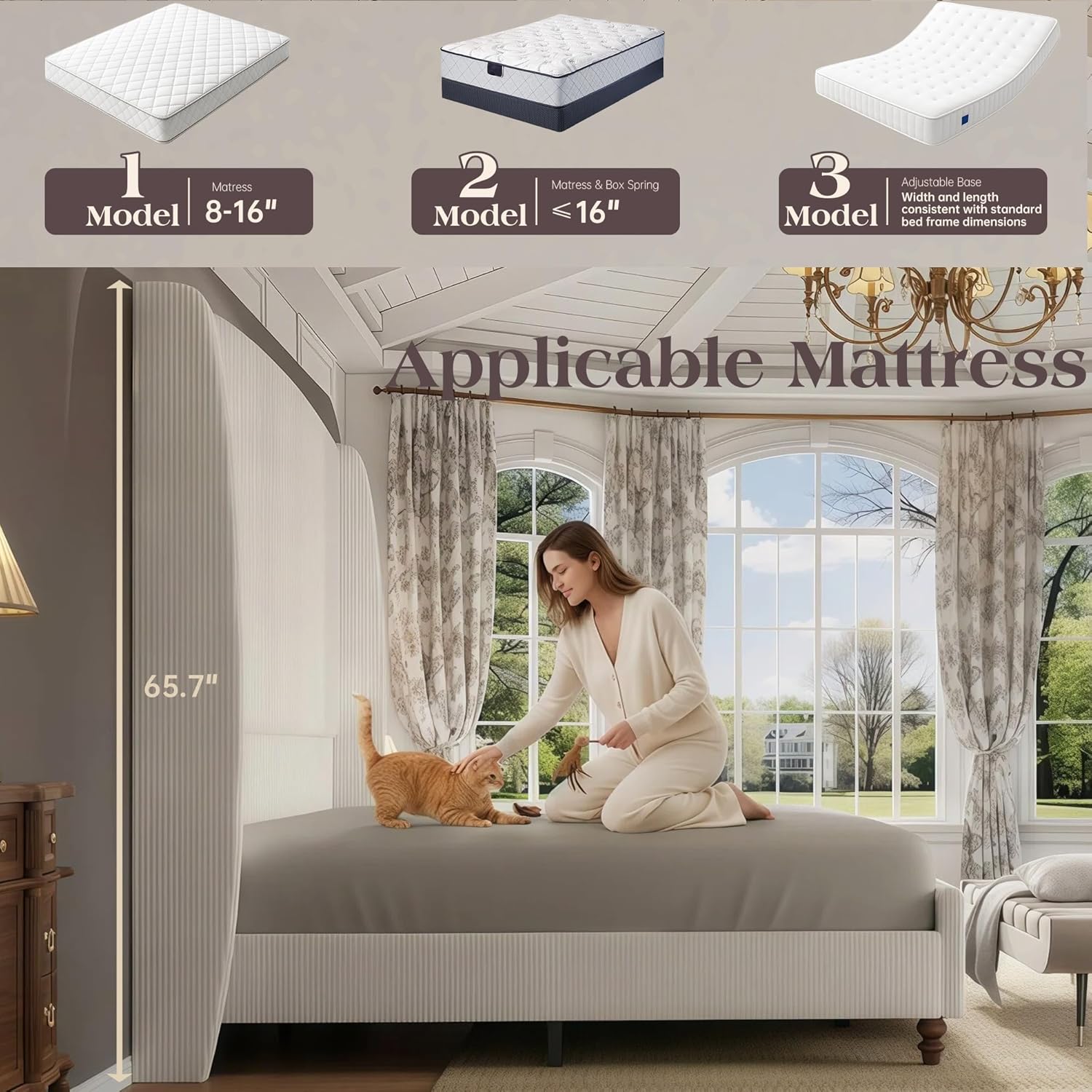 Noise-Free: Designed with wooden slats, this bed eliminates the need for a box spring. The frame includes noise-reducing cotton and an embedded design for a quieter sleep surface. Applicable Mattress: 8-16"