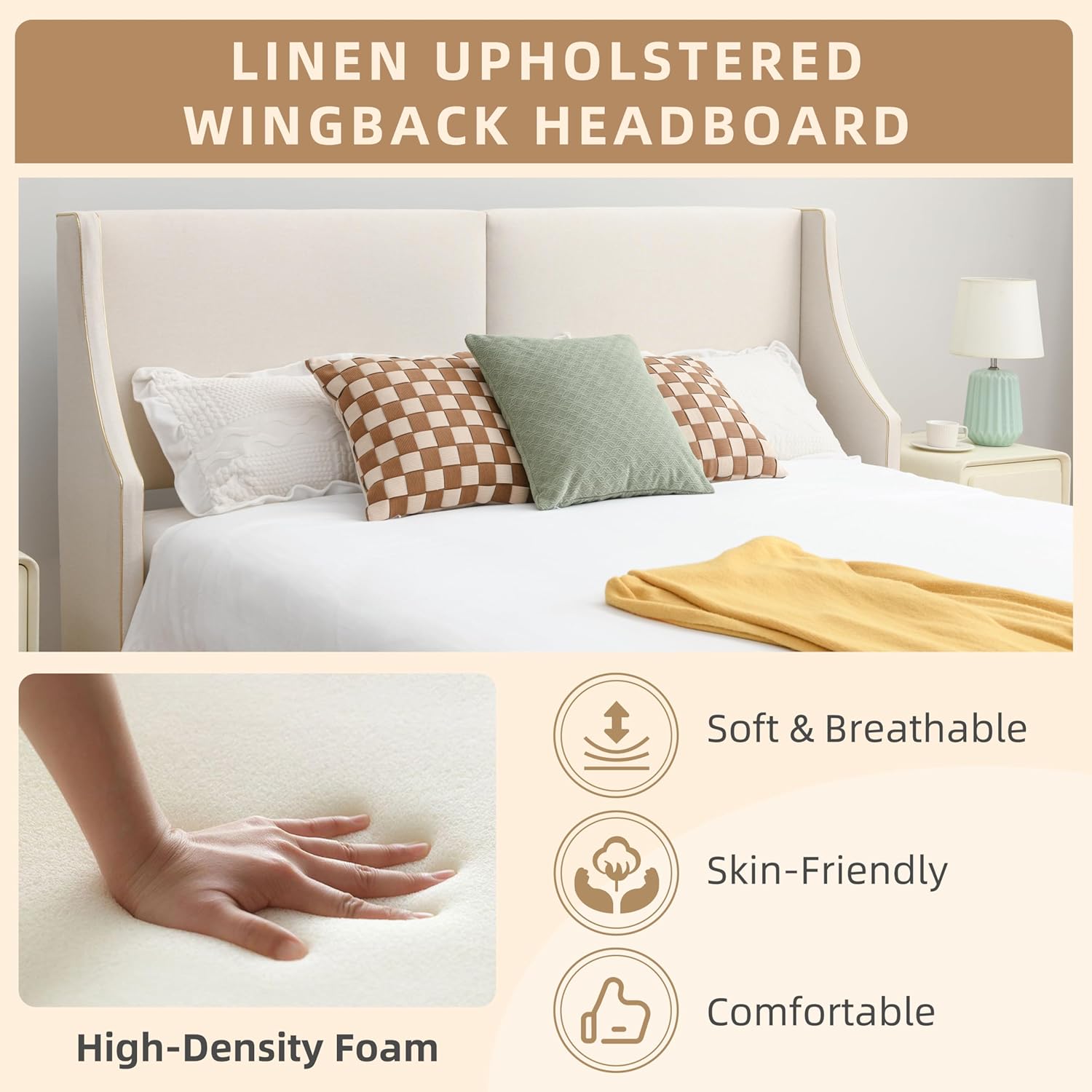 Comfortable Linen: The king size headboard and bed frame is made of linen fabric and high - resilience foam; This combination provides a skin - friendly surface and exceptional comfort, allowing for optimal relaxation and rest