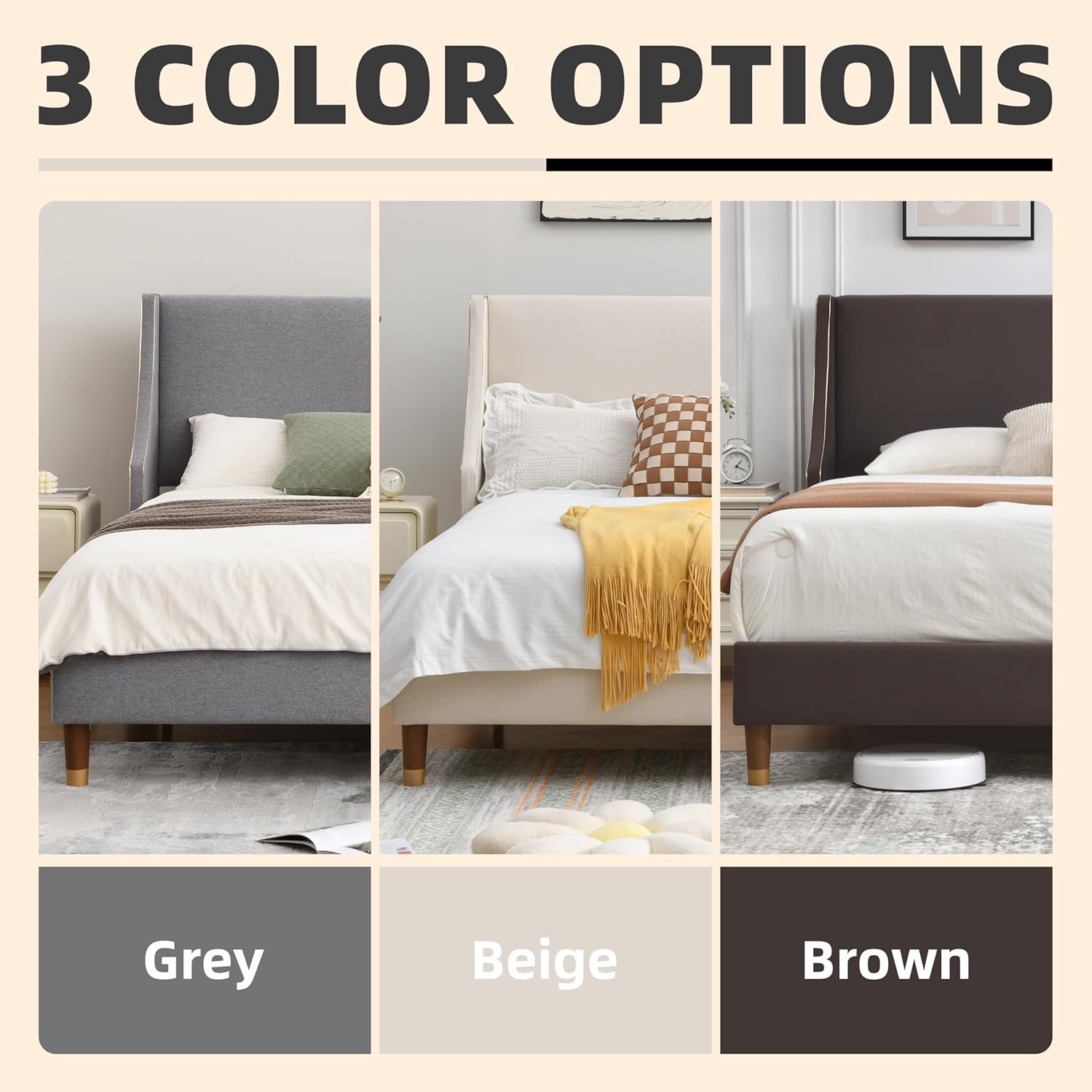 Multiple Color Choices: Available in beige gray color, this modern and stylish king platform bed frame with headboard can effortlessly blend with any bedroom decor style, providing both aesthetic appeal and comfort