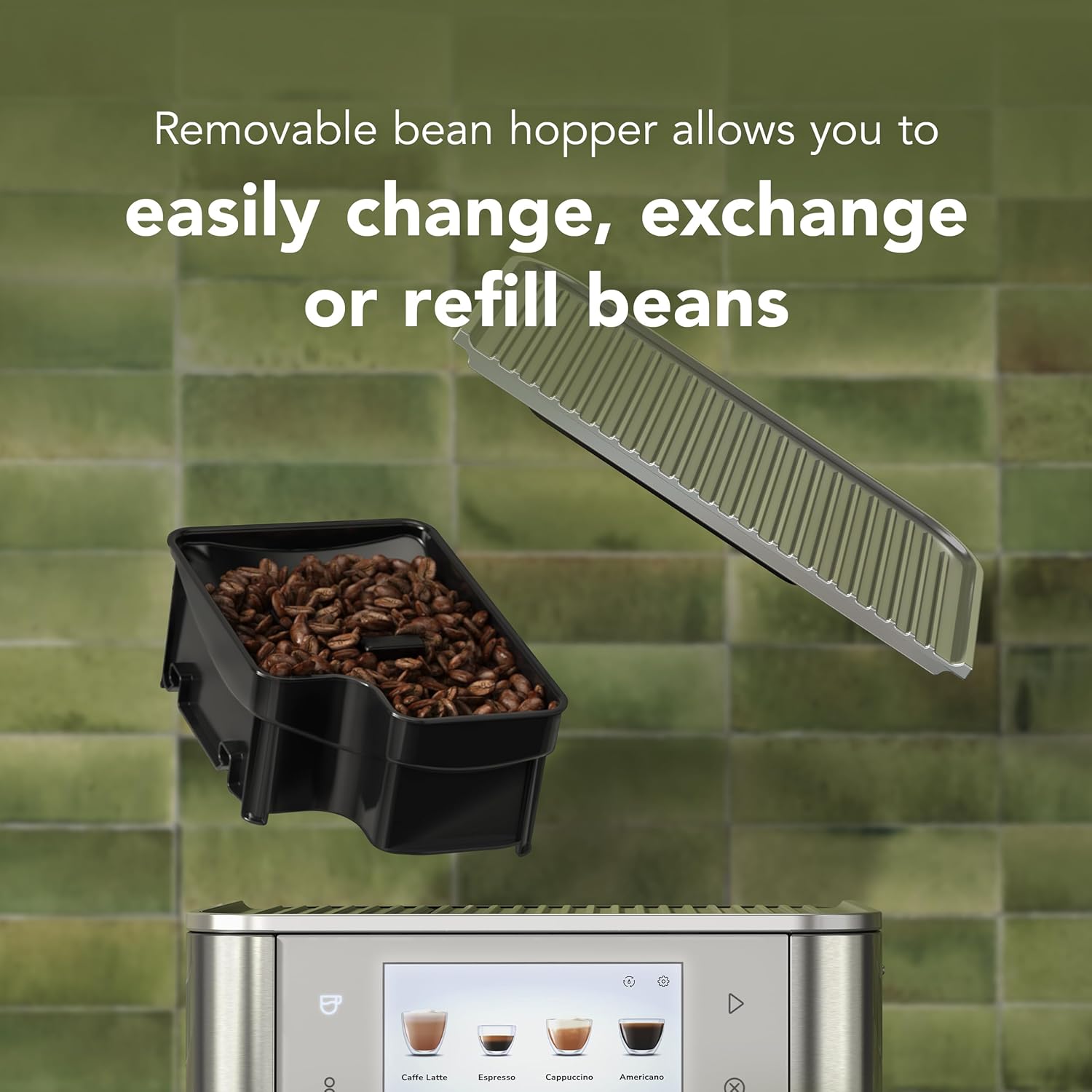 Removable bean hopper allows you to simply twist and lift to easily remove the bean hopper to empty, exchange or refill with fresh beans to suit your taste