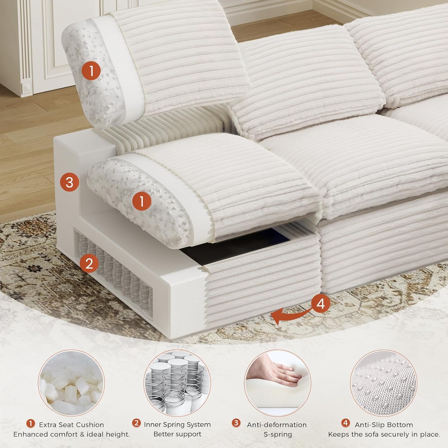 No Assembly Needed: Oversized couch no tools or screws required. Just unpack, gently pat each piece, and allow 72 hours for the sofa to fully expand and regain its shape. Enjoy immediate comfort with minimal effort