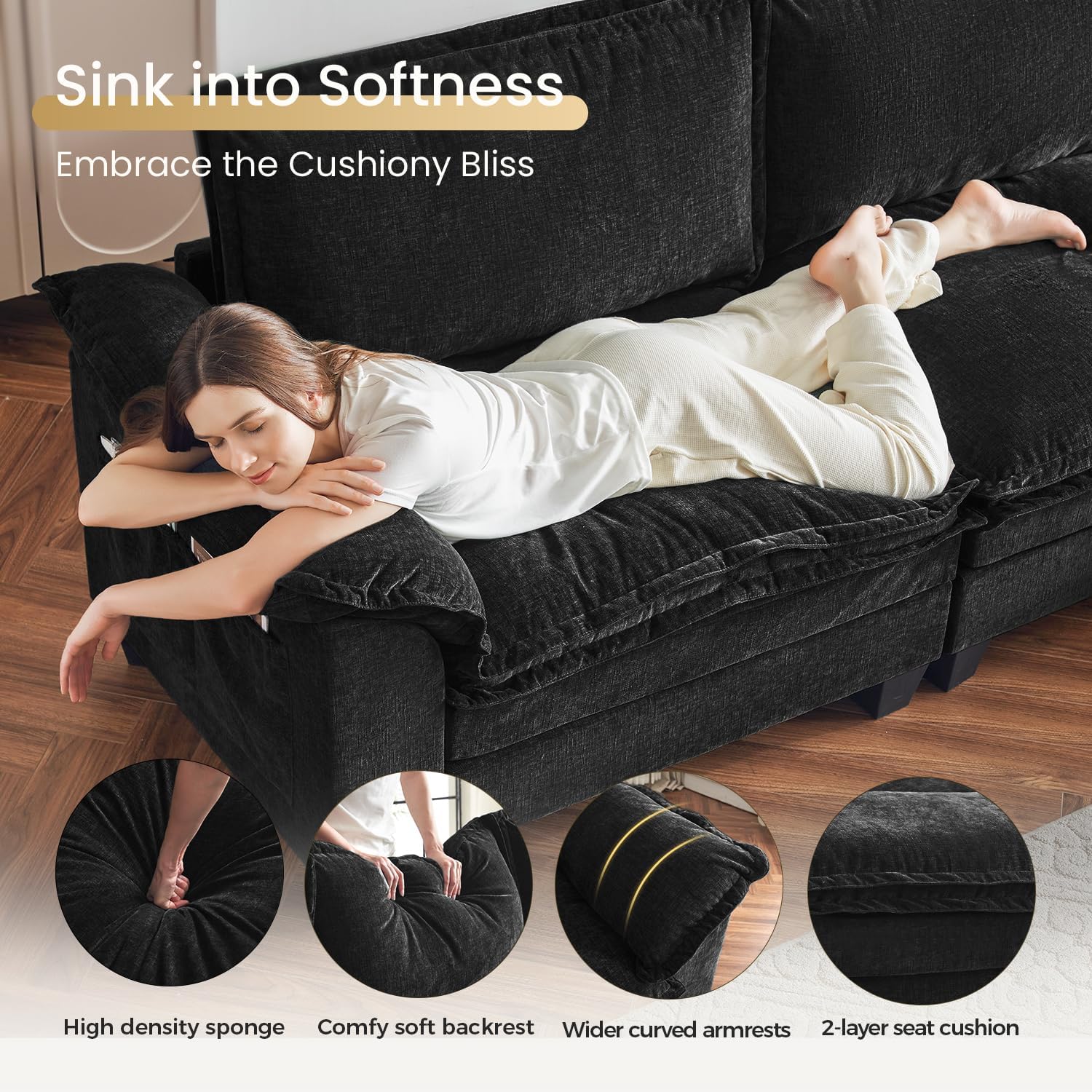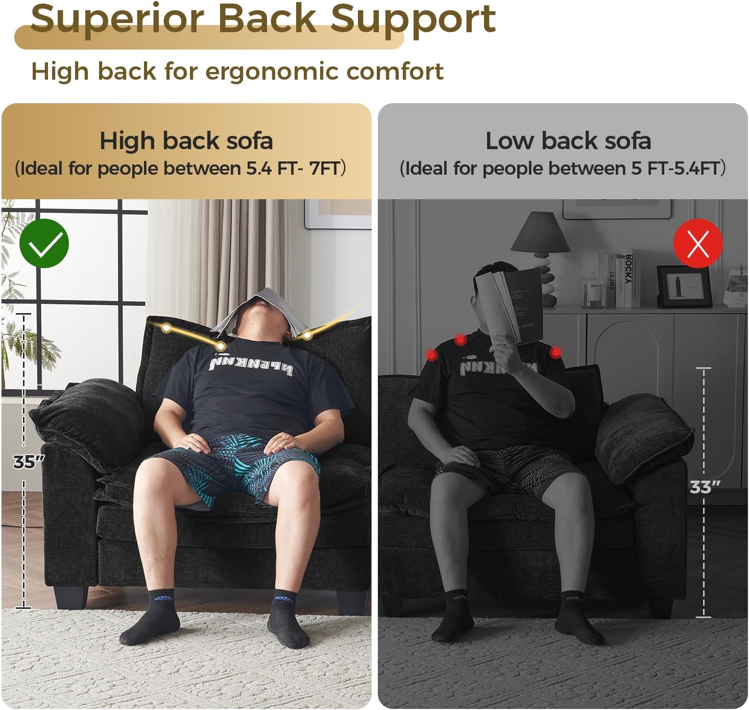 Comfy Sectional Couch: The couches for living room feature 34-inch wide seats, a 20-inch seat height, 24-inch sectional with double-layer cushions, and a 22-inch high back cushion, offering a comfortable lounging experience