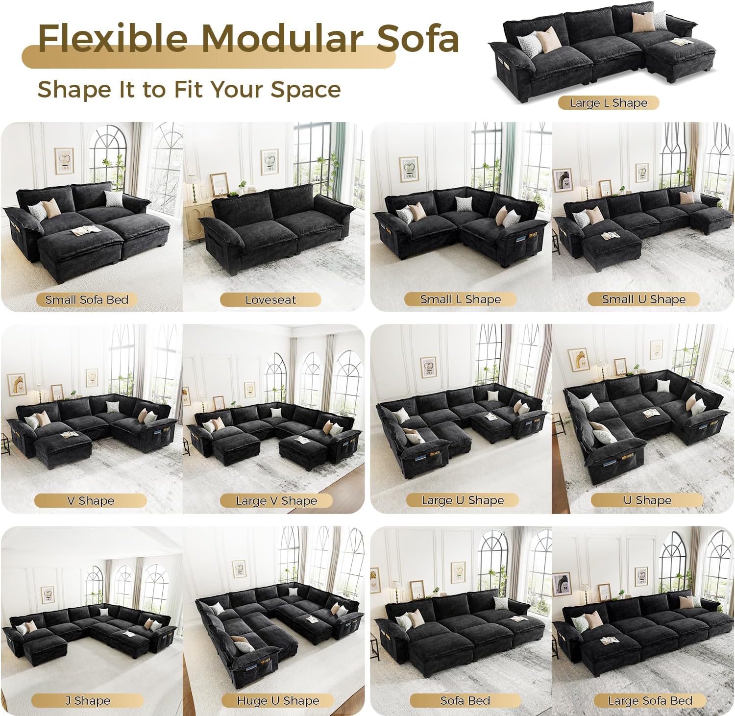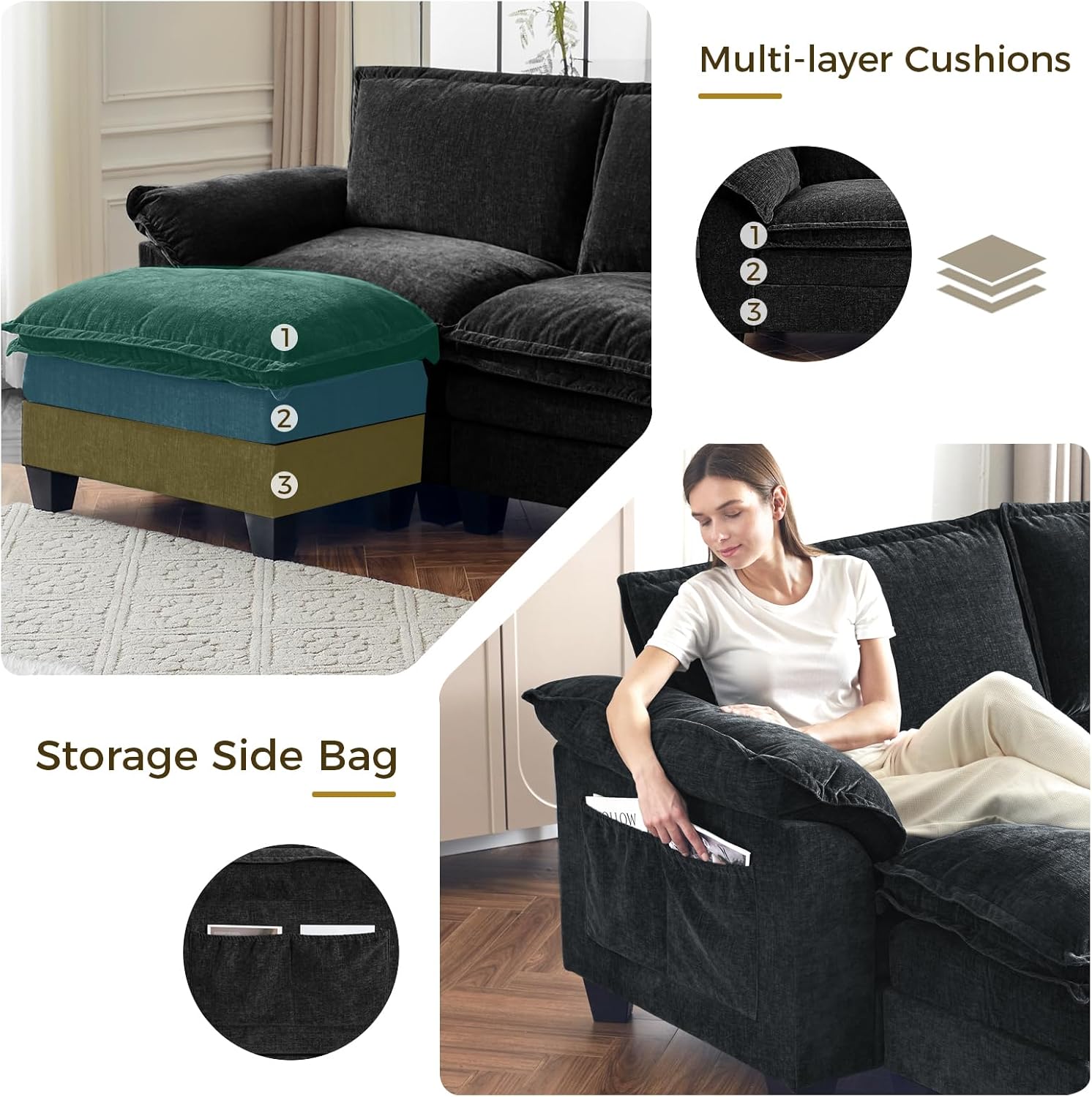 Comfy Sectional Couch: The couches for living room feature 34-inch wide seats, a 20-inch seat height, 24-inch sectional with double-layer cushions, and a 22-inch high back cushion, offering a comfortable lounging experience
