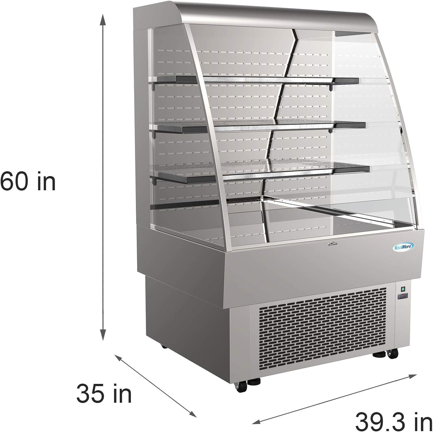 SPACIOUS AND CONVENIENT - 11. 4 cu. ft. capacity and 3 easily adjustable shelves provide plenty of space to display drinks, salads, sandwiches and pastries, overall dimensions 39. 3W x 35. D x 60. H