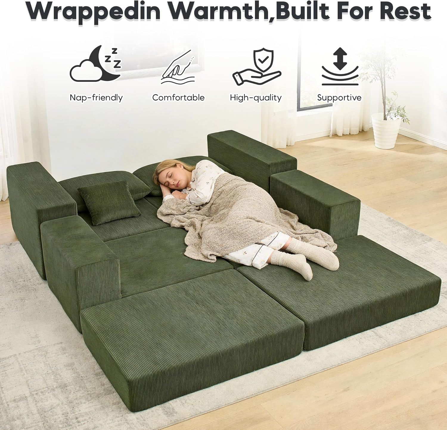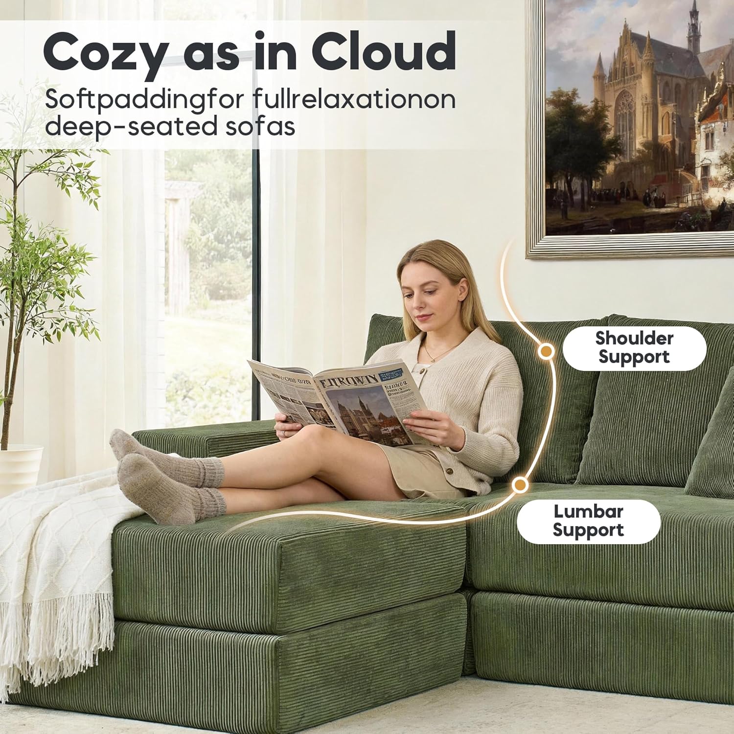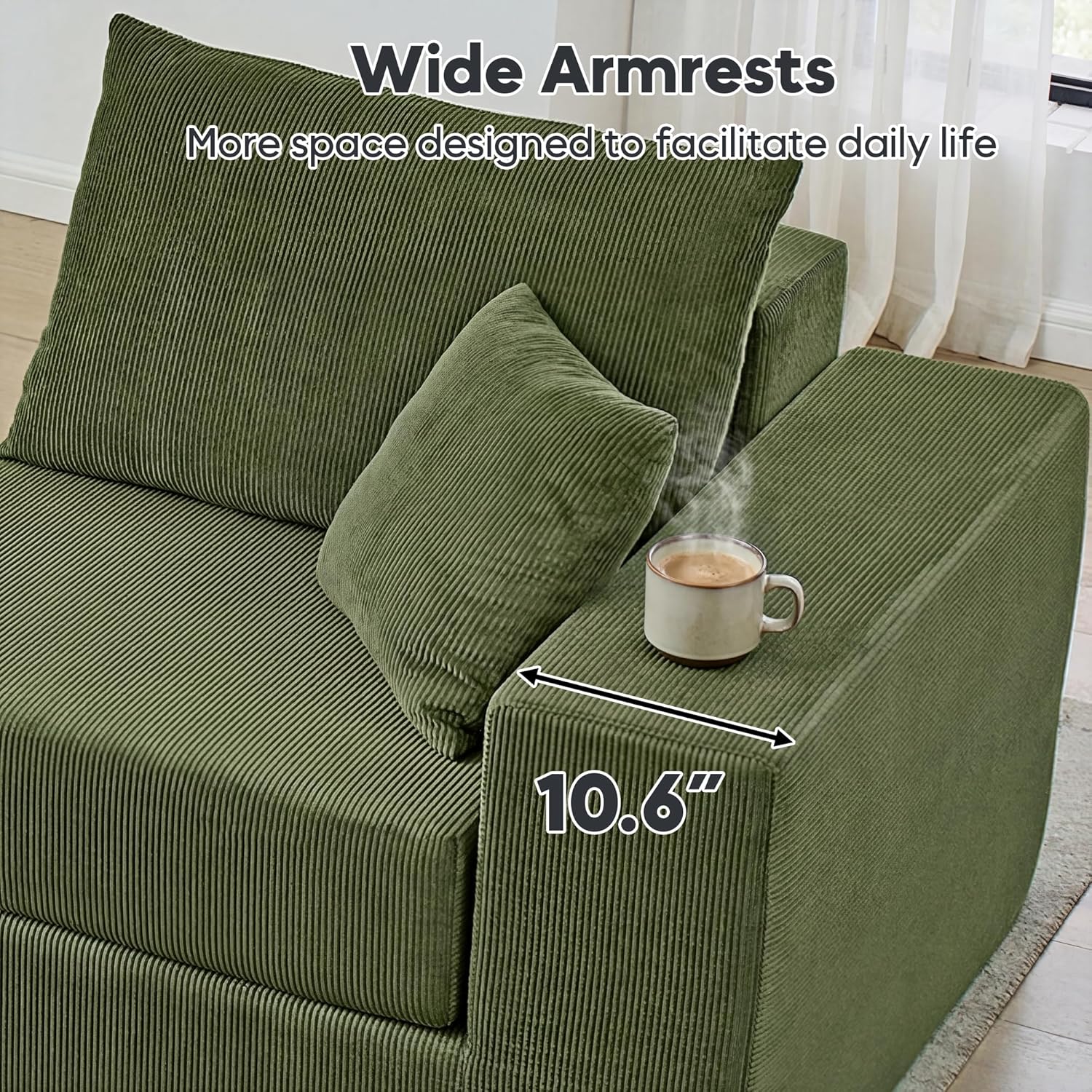 Elevated Corduroy Craftsmanship: Draped in upgraded, anti-wrinkle corduroy, the sofa harmonizes plush tactility with pragmatic elegance. Its textured depth enhances interiors across seasons, backed by rigorously tested durability for lifelong sophistication.