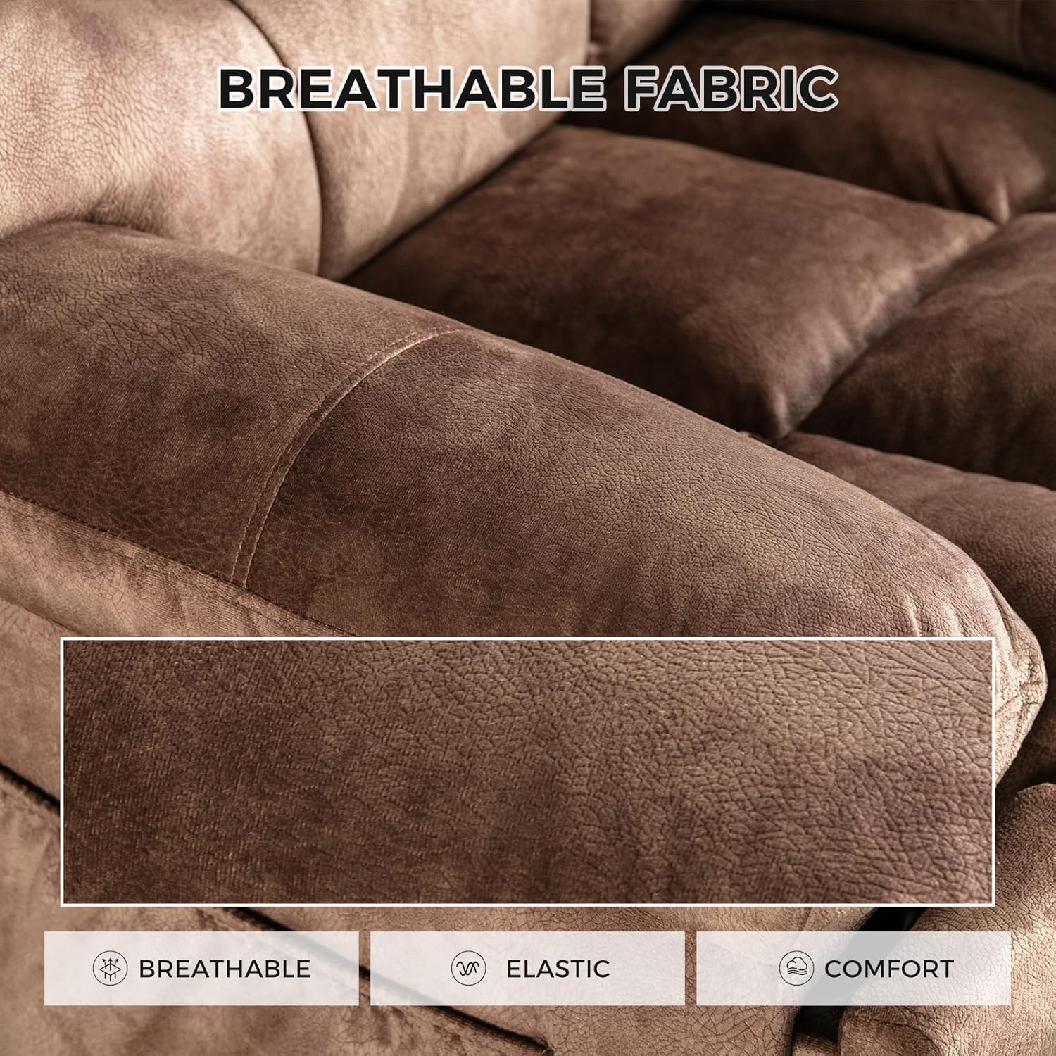 High Backrest & Wider Seat: Our recliner's backrest is designed to be wider and taller, with every inch filled with cloud-like sponge that gently cradles your head and shoulders, helping you release the day's tension. The spacious seat provides ample room for you to sit cross-legged or stretch out. Paired with soft fabric, it delivers unparalleled comfort. This is more than just a chair - it's your favorite spot at home.