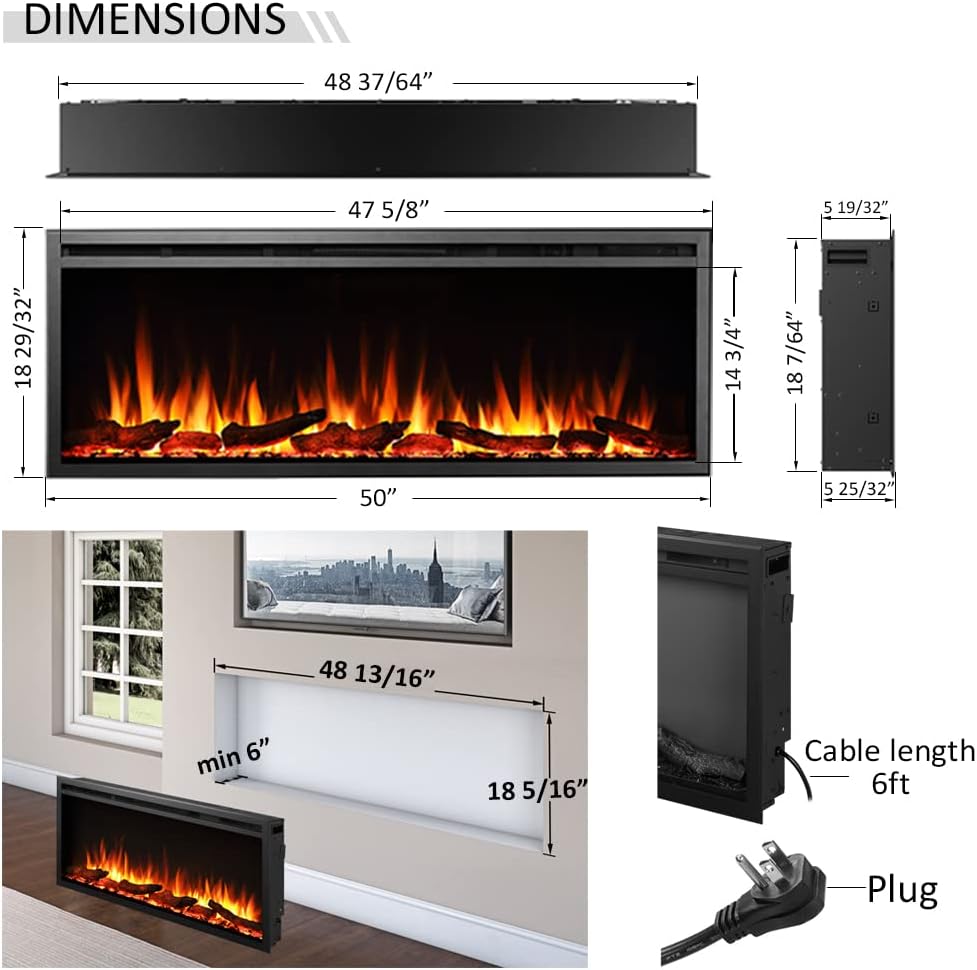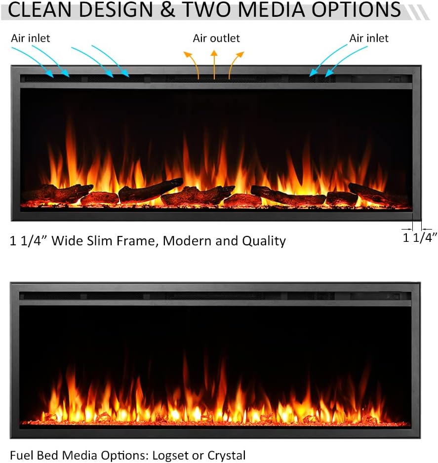 MULTI FLAME COMBINATIONS: The modern and realistic flame creates a life-like flame feel; Including both options for fuel bed: Log set and crystal stone. Multi color flame and fuel bed in 5 brightness settings, crackling sounds to suit your different moods cheerful or peaceful in different occasions. Flame and crackling effect can be used with or without heat.