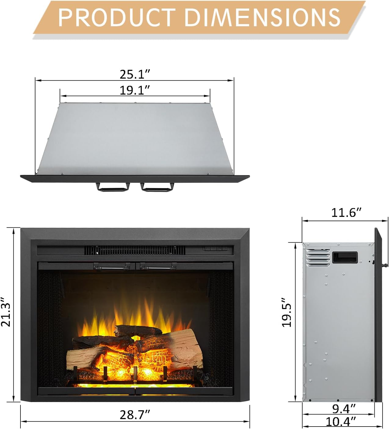 A sleek look with three-sided interior brick wall and clean glass front trim design, avoids the hassle of cleaning dust or ashes. Realistic life-like resin log takes you to the dream life, especially when the flame is on. Nine (9) settings of the mood light shining down make the log more incredible.