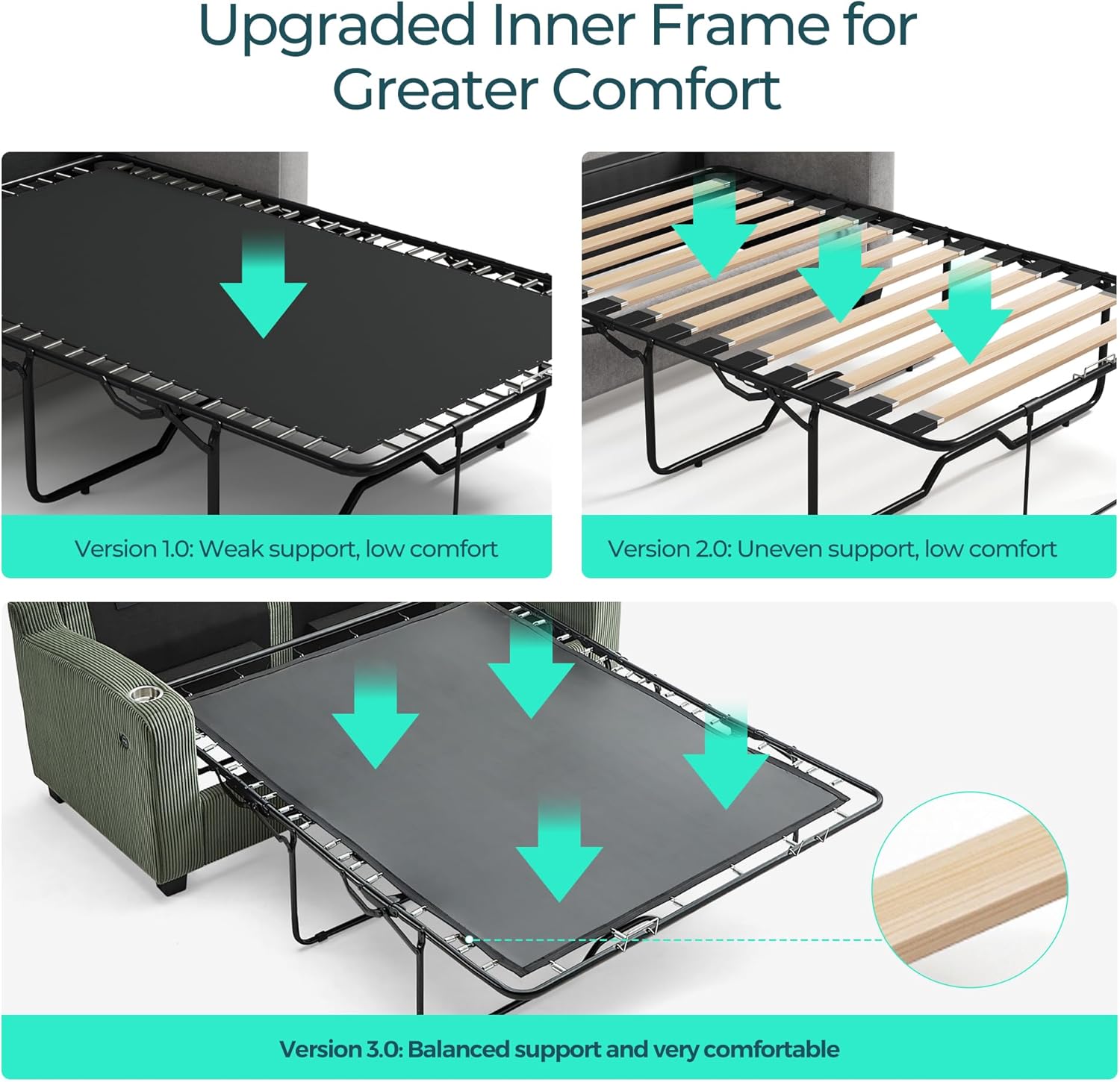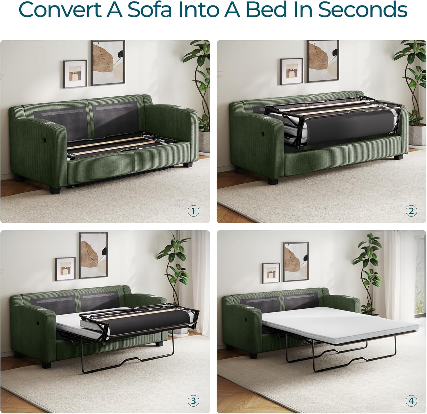Premium & Comfortable Corduroy FabricThis sleeper sofa is made of soft, luxurious corduroy fabric, which is skin-friendly, wear-resistant, wrinkle-resistant, and stylish. Stylish corduroy sofa elevates the overall aesthetic of your living space, creating a refined look that complements any decor style perfectly