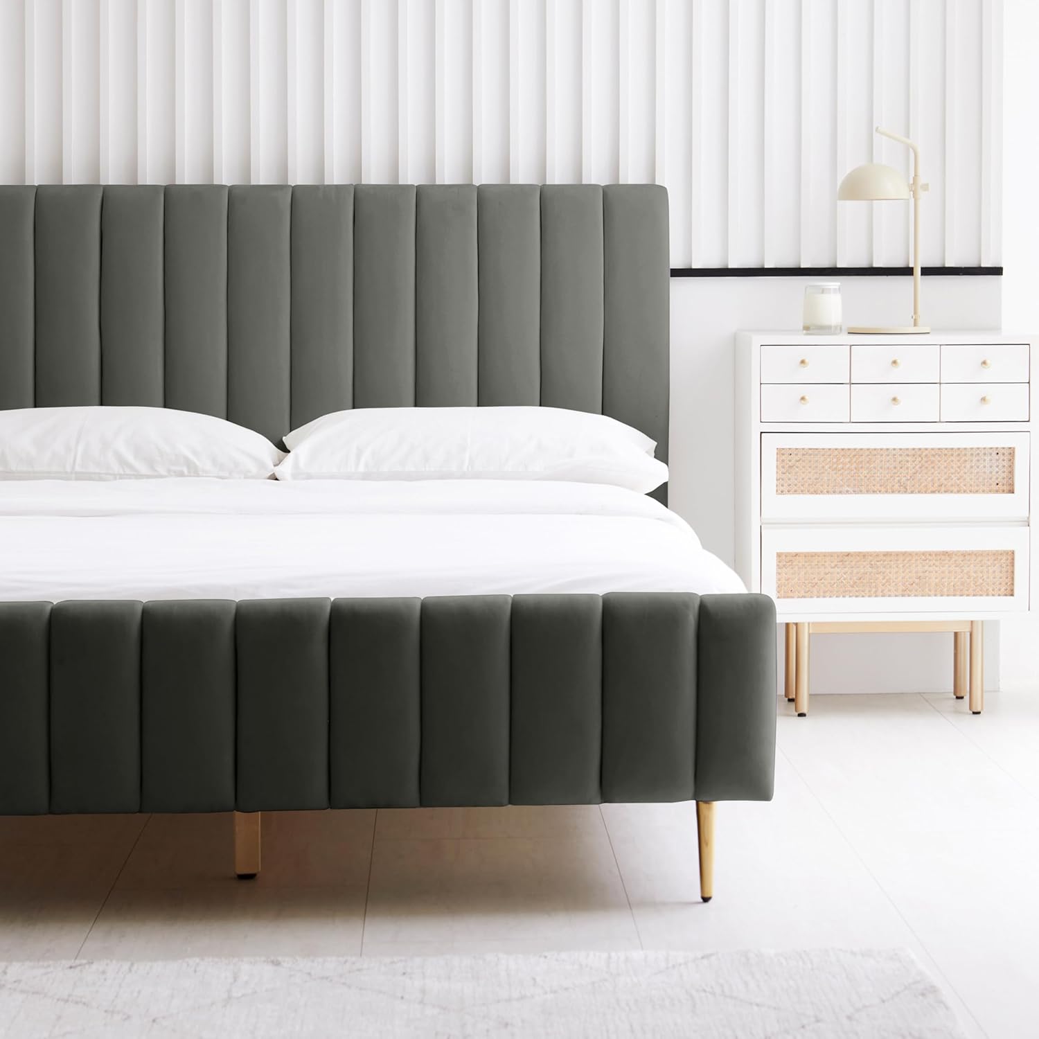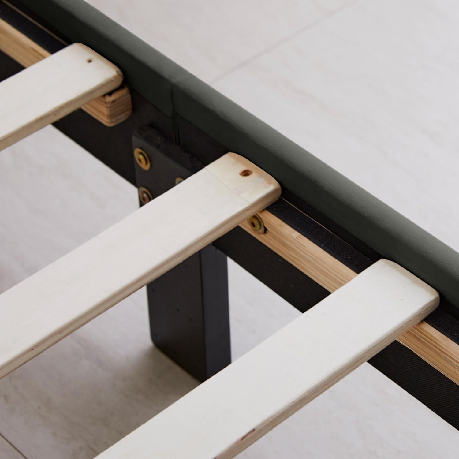 Built Strong High quality velvet upholstery with solidwood framework. The 12 piece wooden slat system with wooden center rail and support rail provides reliable and long lasting support.