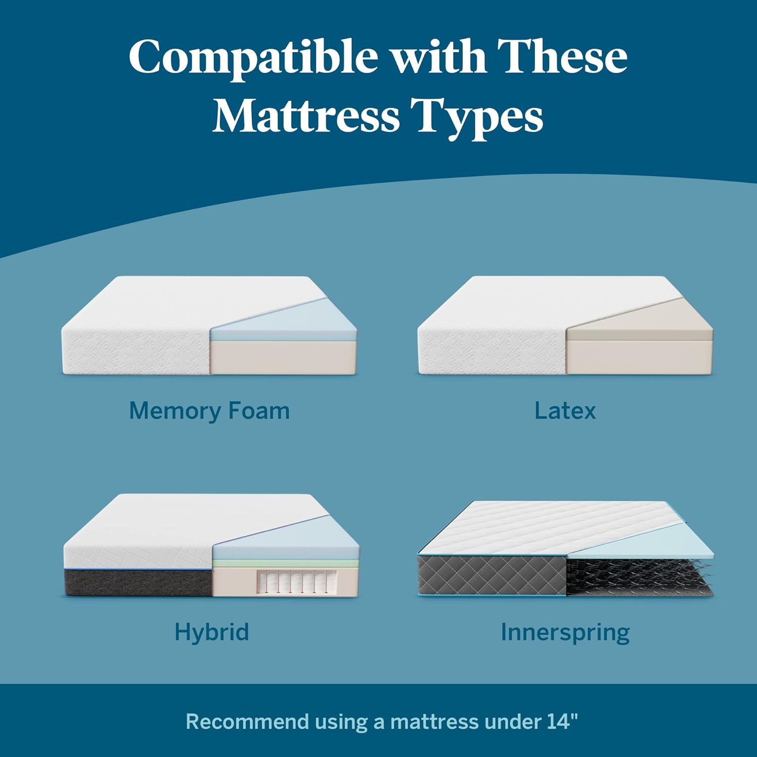 COMPATIBLE WITH MOST MATTRESSES: Adjustable bed base is compatible with any mattress, and most mattresses under 14 inches