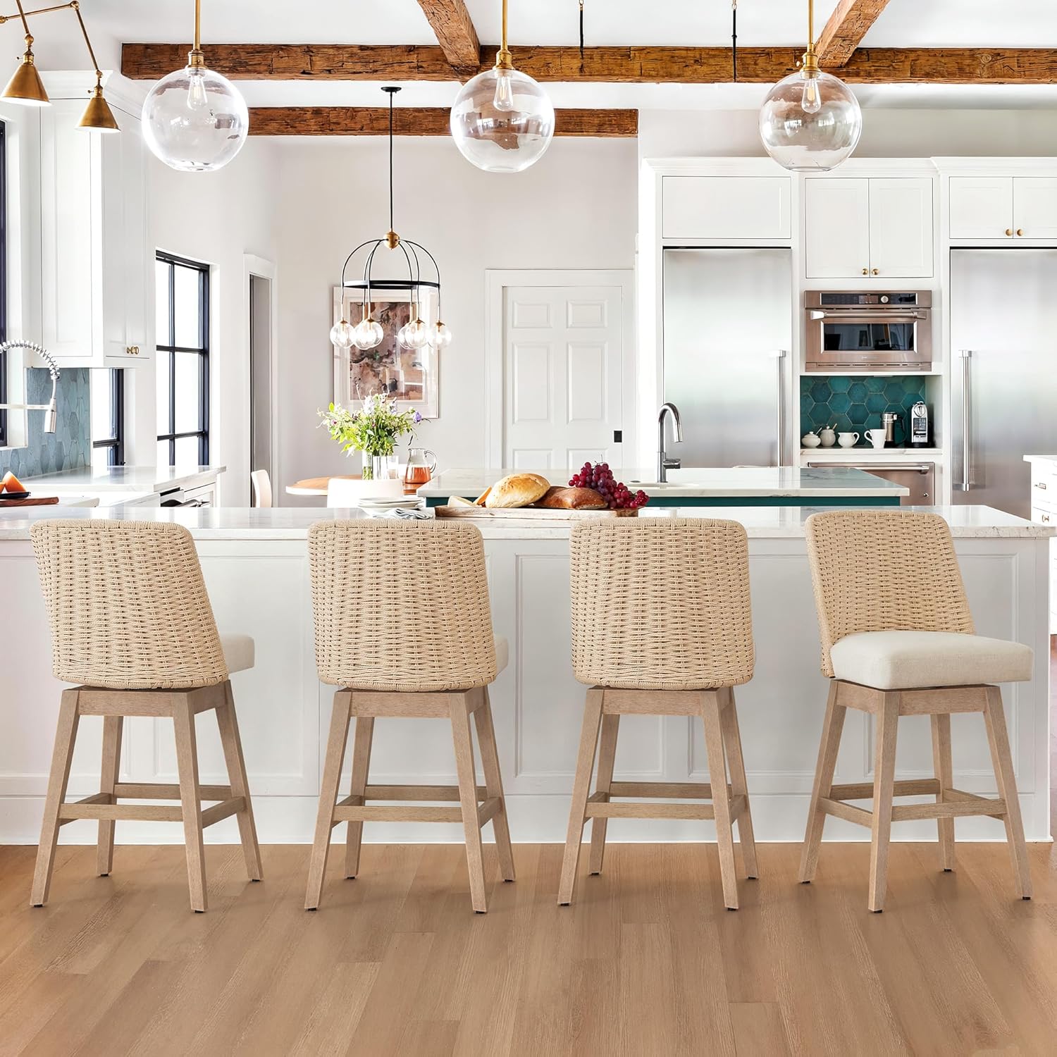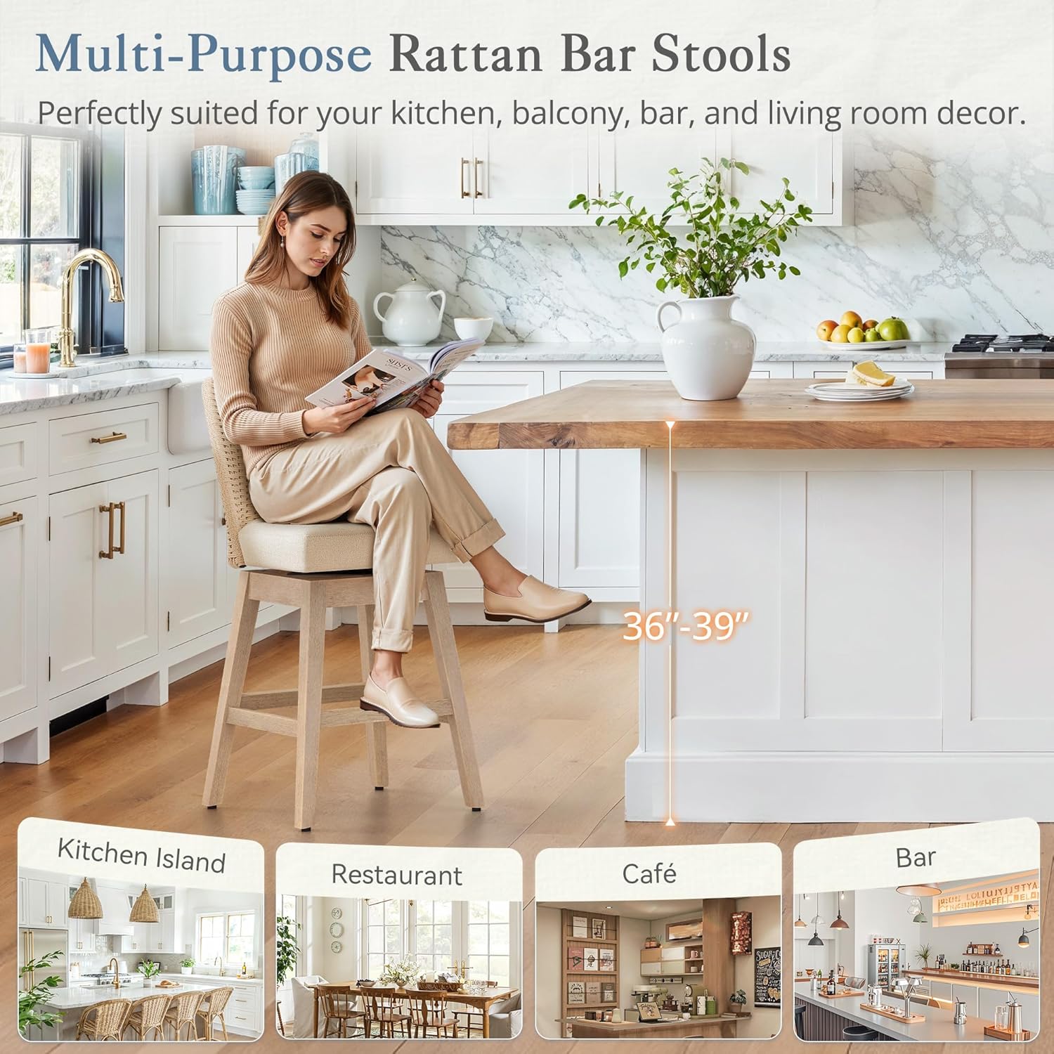 Perfect Fit Kitchen island: 26.7 inch seat height fits standard 36 to 39 inch countertops; ideal for kitchen island or covered patio use; versatile boho style complements various decors