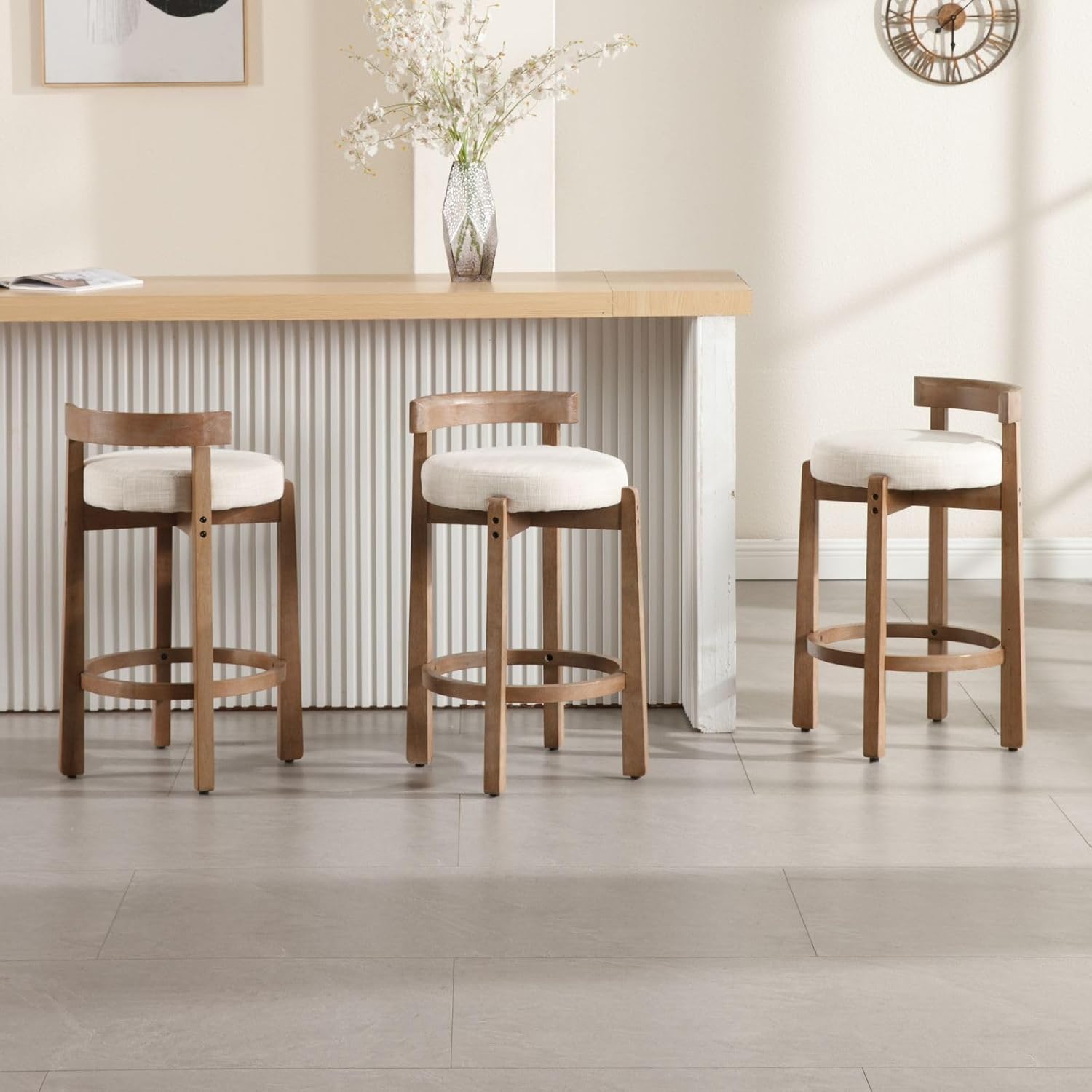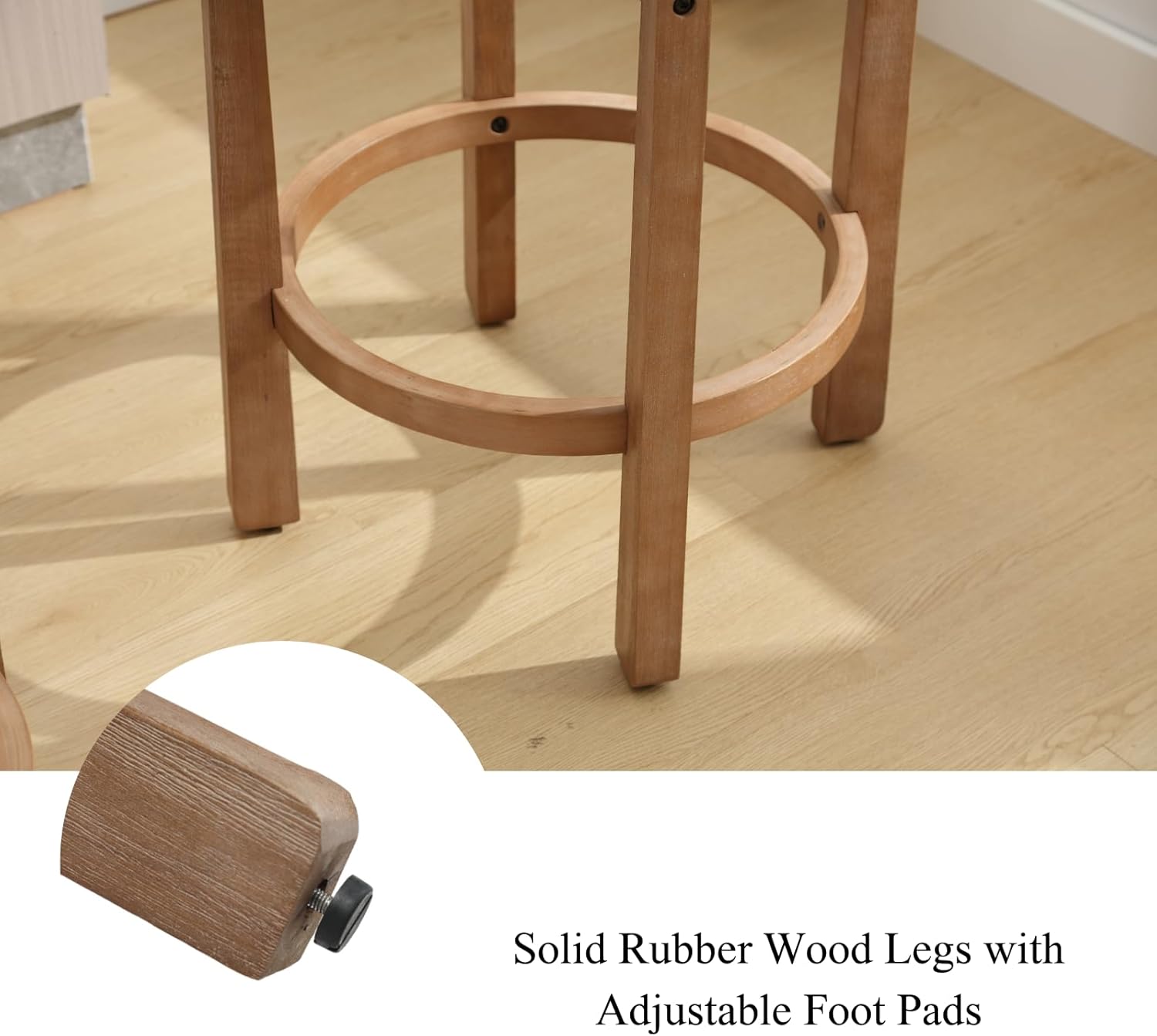 Sturdy Frame: The stable wooden footrest design, free your feet when you sit down, and make this cushion barstool more stable, so that you can use it for a long time. Equipped with plastic foot pads, not only non-slip, but also prevent the floor from being scratched