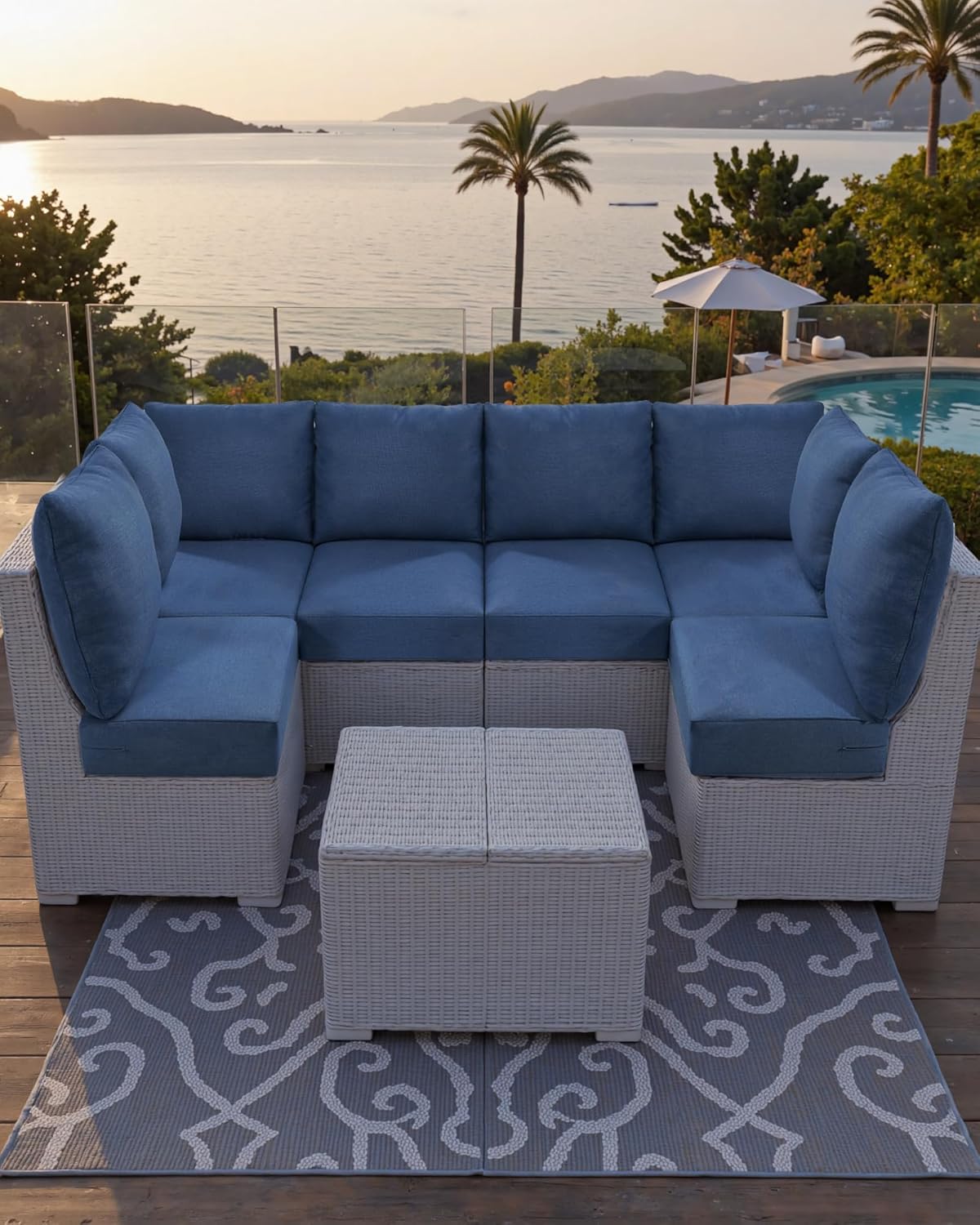 • Luxury 24x24x6 Outdoor Couch Cushions Set of 3 - Water-Repellent 8-Piece Cushion Set for Outside Wicker 3-Seat Sofa Loveseat Chair Sectional Patio Conversation Sets - Navy Blue/Classic