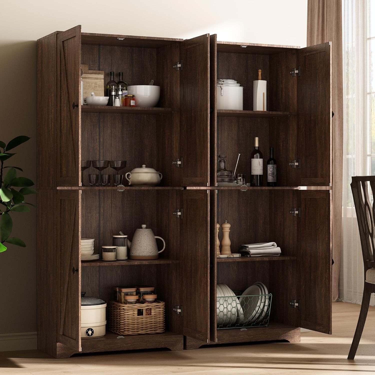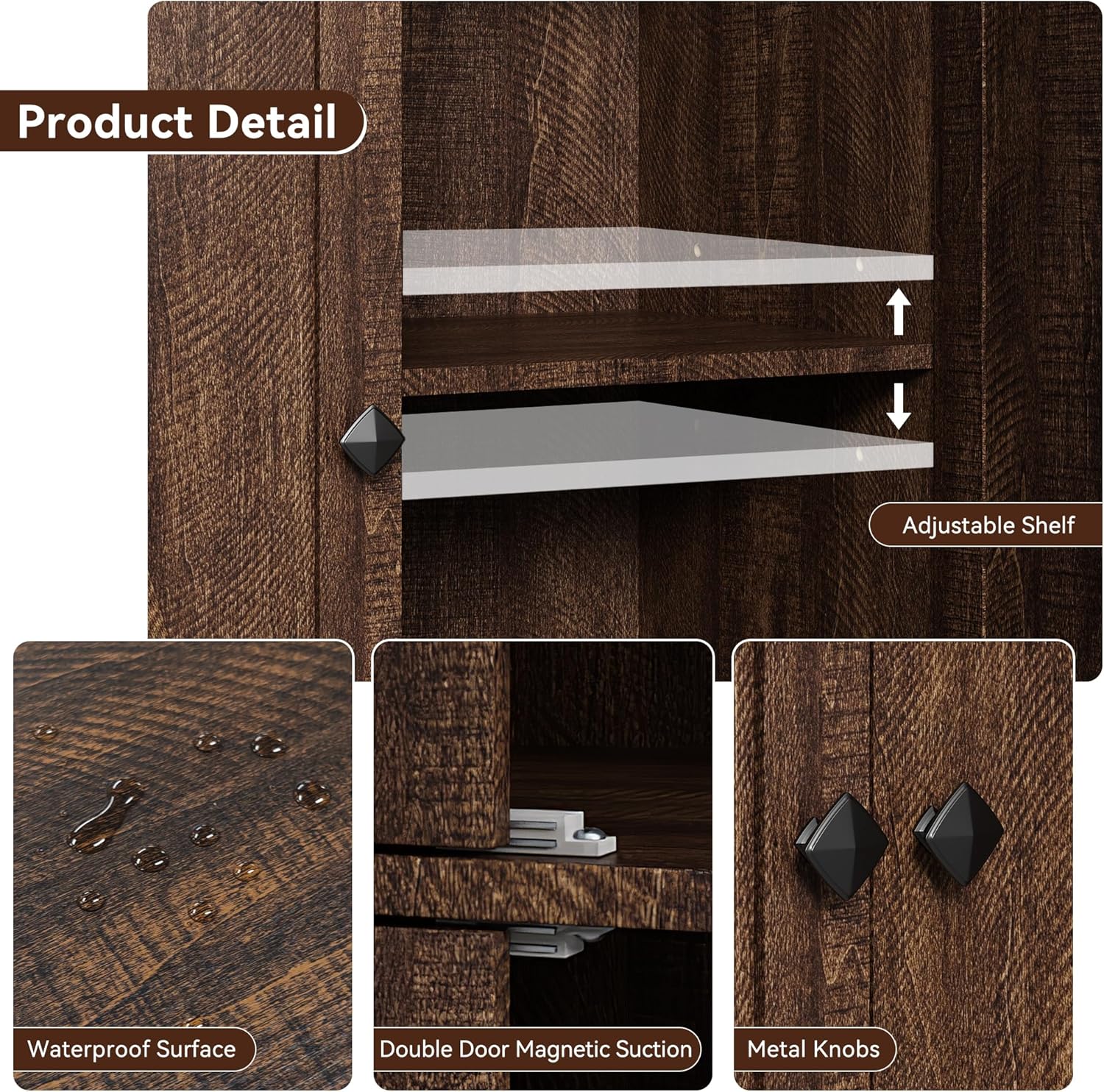 Versatile Storage Cabinet: kitchen pantry cabinet seamlessly complements any space in your home. Suitable for use in various rooms such as the kitchen, dining room, living room, or bedroom, the storage cabinets serve multiple purposes from storing dishes and linens to organizing books or showcasing collectibles.