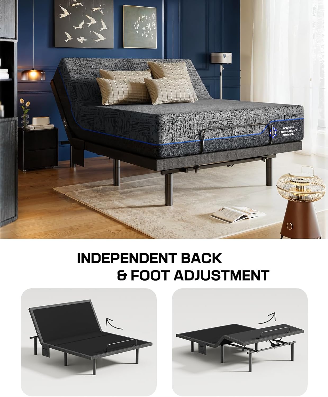 Premium Durability & Universal Fit Heavy-duty dual motors (tested for 50,000+ cycles) work flawlessly with all 8-14" mattresses (memory foam, hybrid, latex, or spring), backed by a 1-year worry-free warranty.