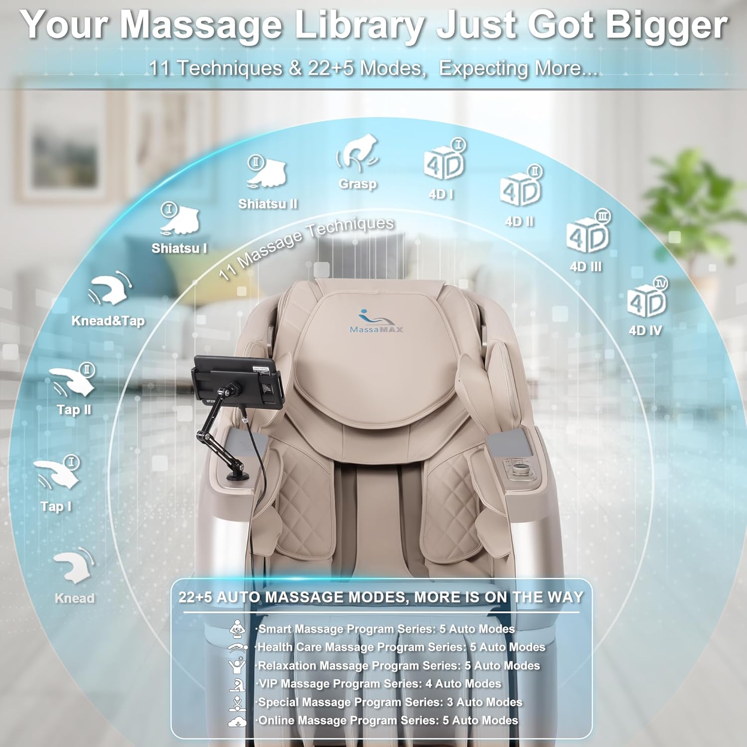 [OTA Cloud Technology] Your Chair Never Gets Old. > Access an expanding library of 27+ professional massage programs via our cloud server. With new sequences added regularly through seamless OTA (Over-the-Air) updates, your massage experience stays fresh and evolves with the latest wellness techniques.
