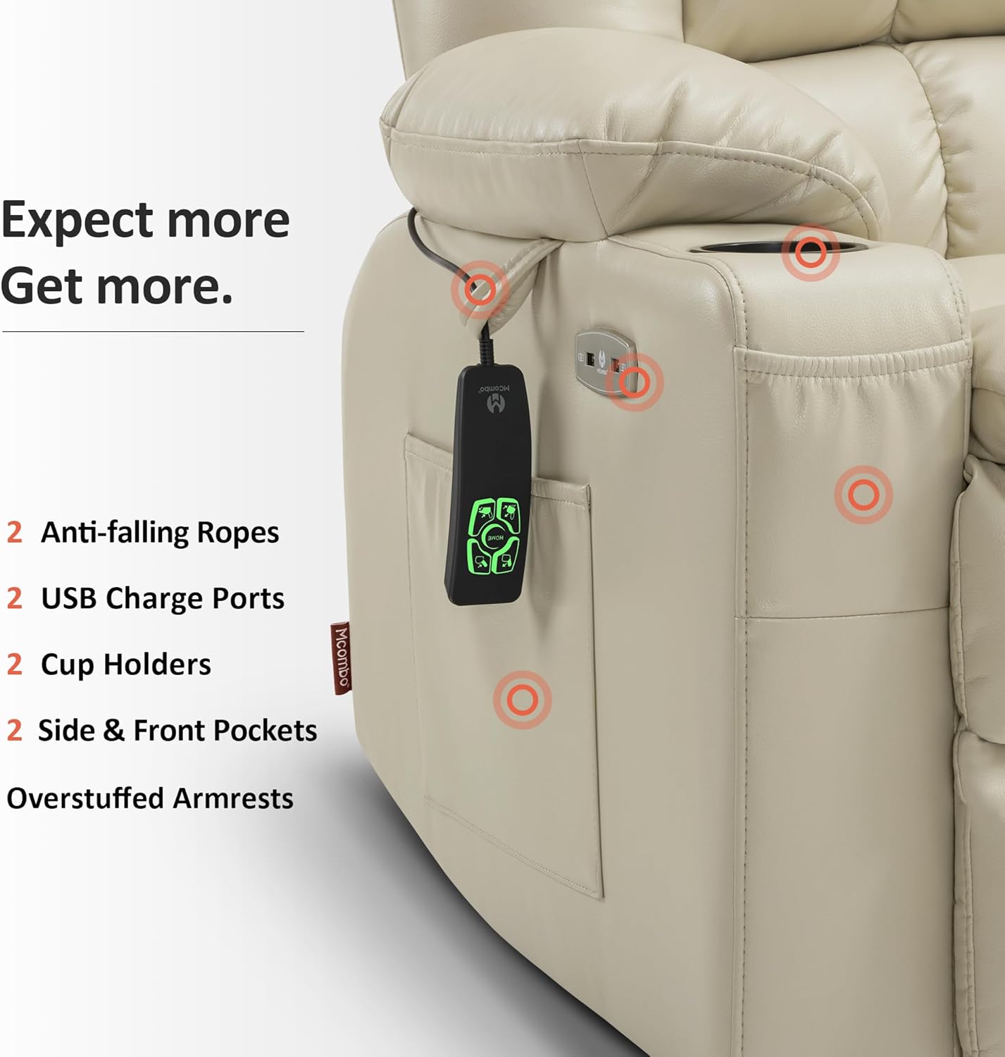 USB Charging Ports & Cup Holders. The dual USB ports and cup holders in the recliner will allow you to put your drink on the cup holder and charge your mobile devices all while enjoying a movie or enjoying your favorite apps
