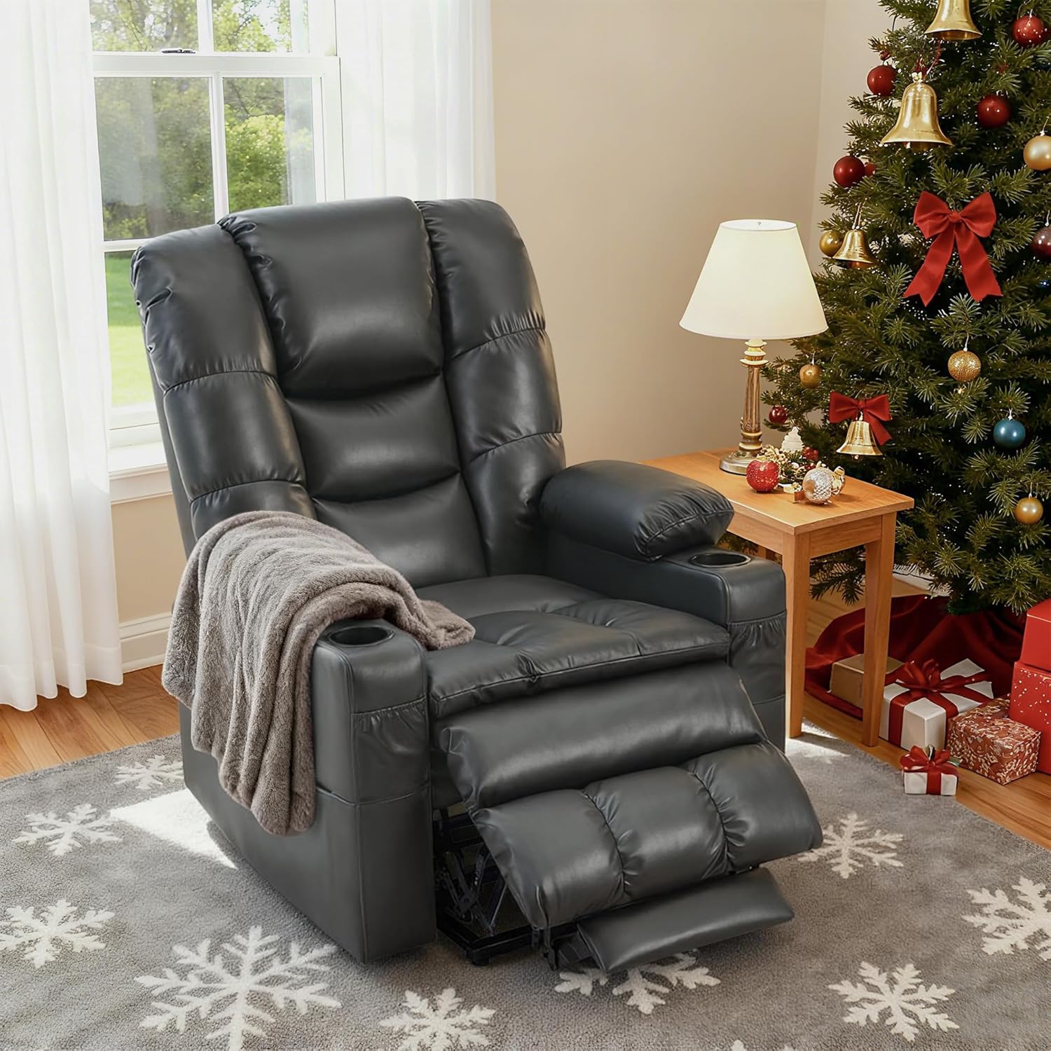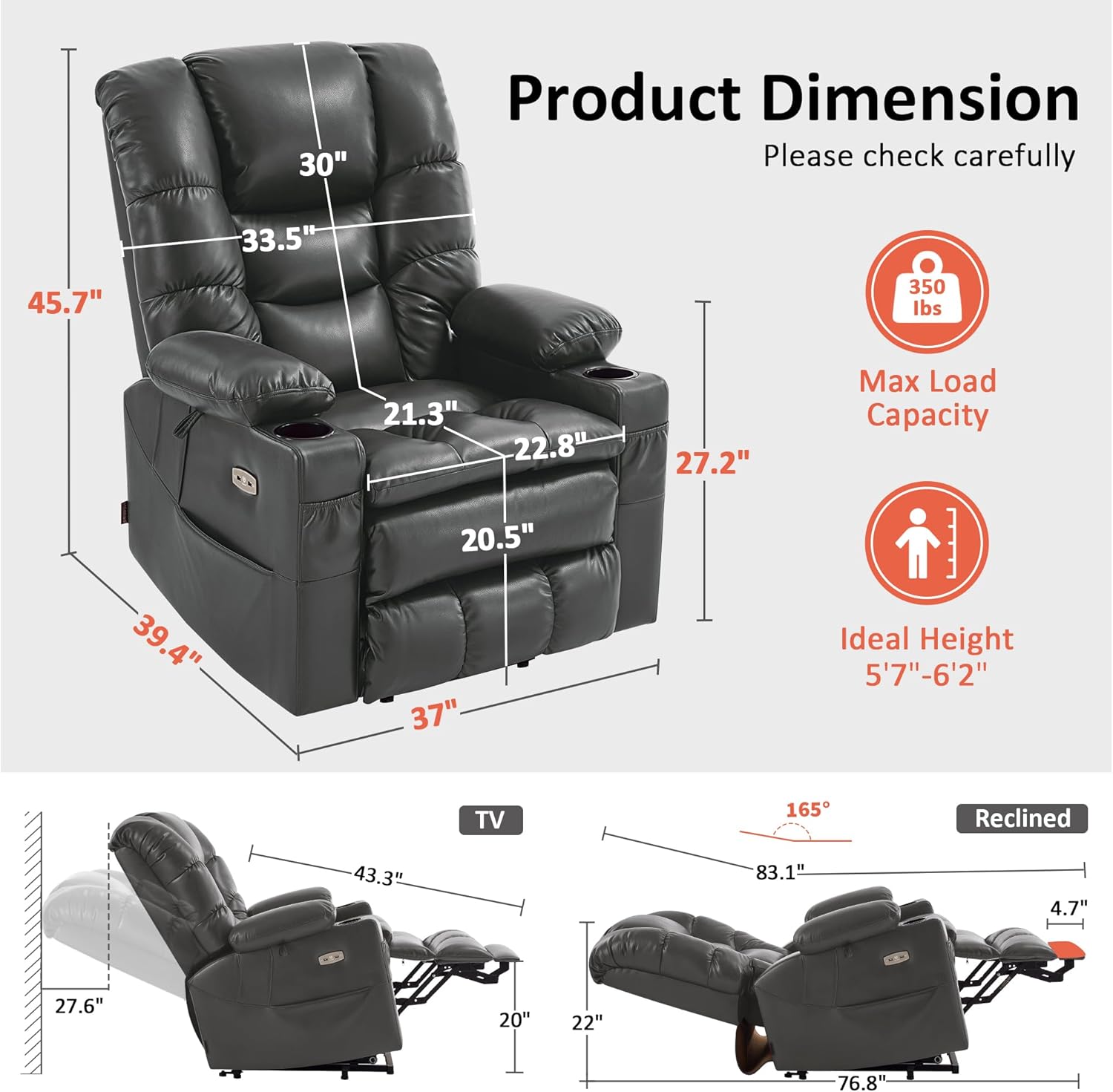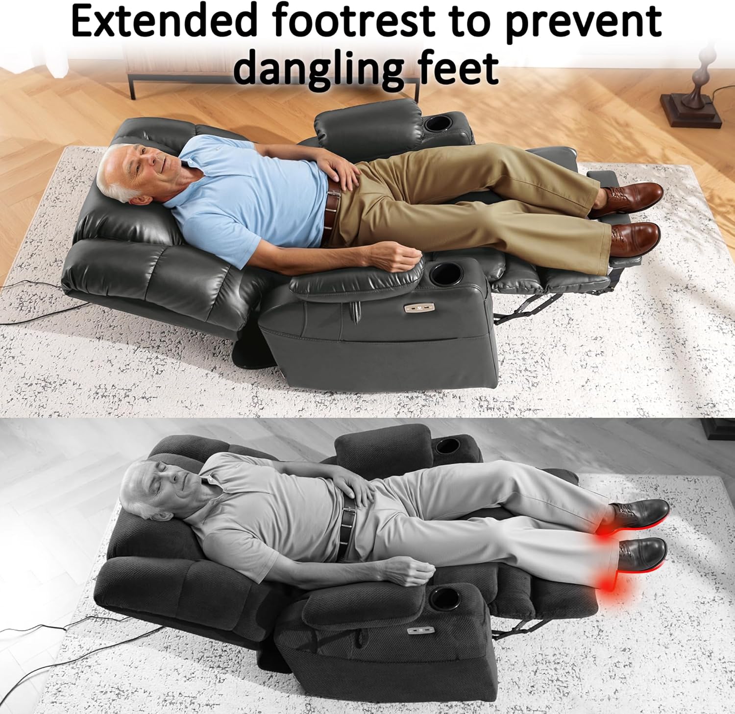 USB Charging Ports & Cup Holders: The dual USB ports and cup holders in the recliner will allow you to put your drink on the cup holder and charge your mobile devices all while enjoying a movie or enjoying your favorite apps