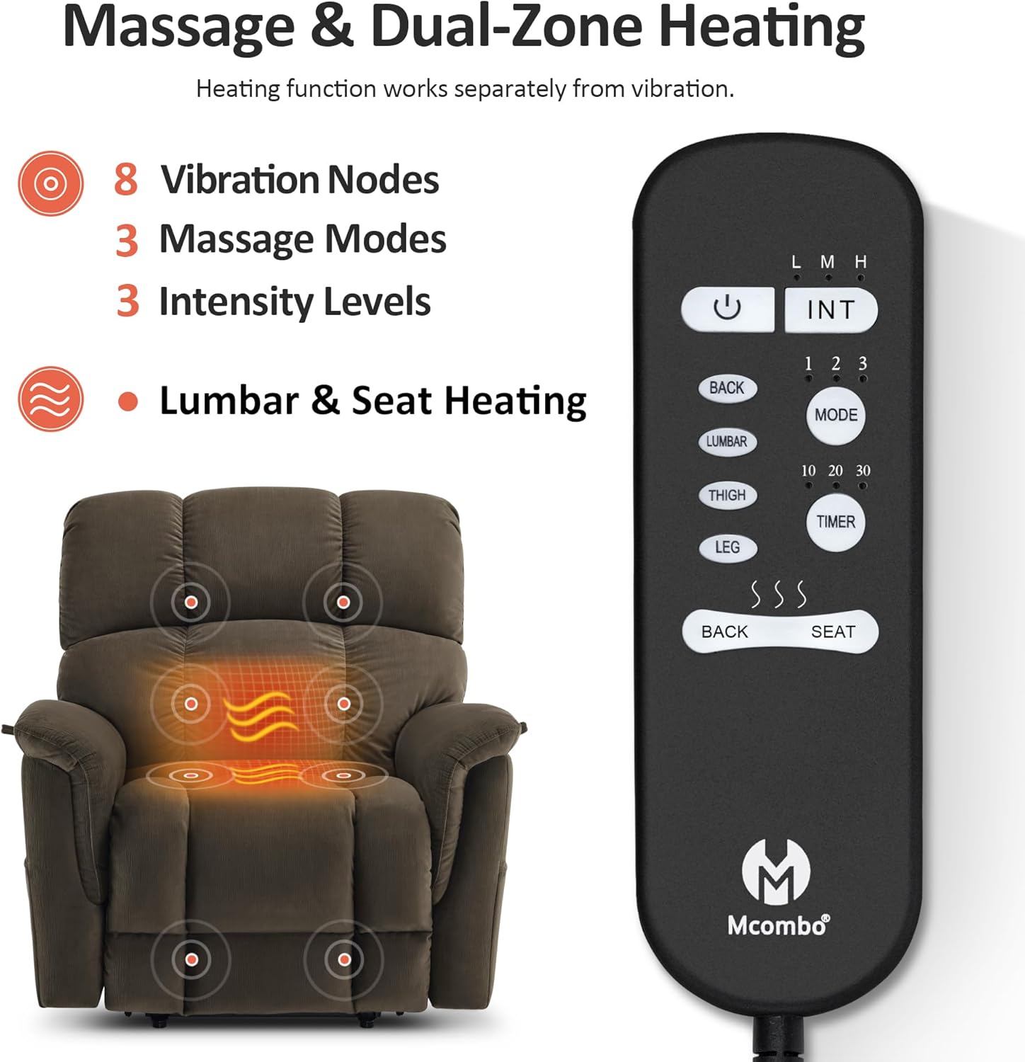 Full-body Vibration & Lumbar and Seat Heating: It comes with 8 vibrating points around the chair and 2 heating points. Both can be turned off at a fixed time of 10/20/30 minutes (Heating function works separately from vibration)