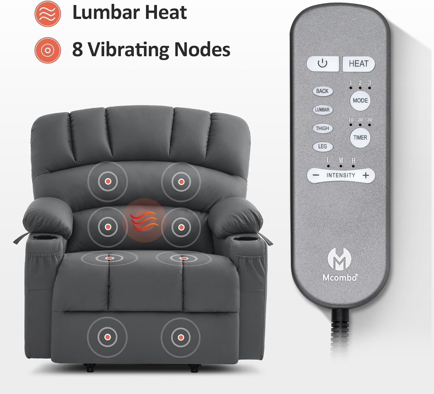 Lumbar Heat & Full-Body Vibration: Enjoy personalized relaxation with 8 vibration nodes (5 massage modes, 2 intensity levels) working independently of the lumbar heating zone, both featuring 10/20/30 minute auto-off timers. (Heating function works separately from vibration)