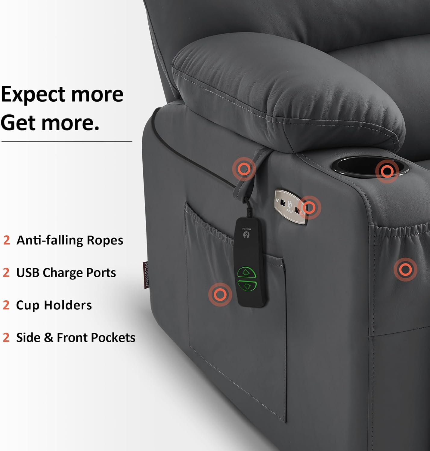 Convenience at Your Fingertips: The built-in cup holder keeps drinks within easy reach, while the armrest loop securely holds the remote to prevent drops. The USB charging port lets you power devices without leaving your seat, everything you need is right at hand