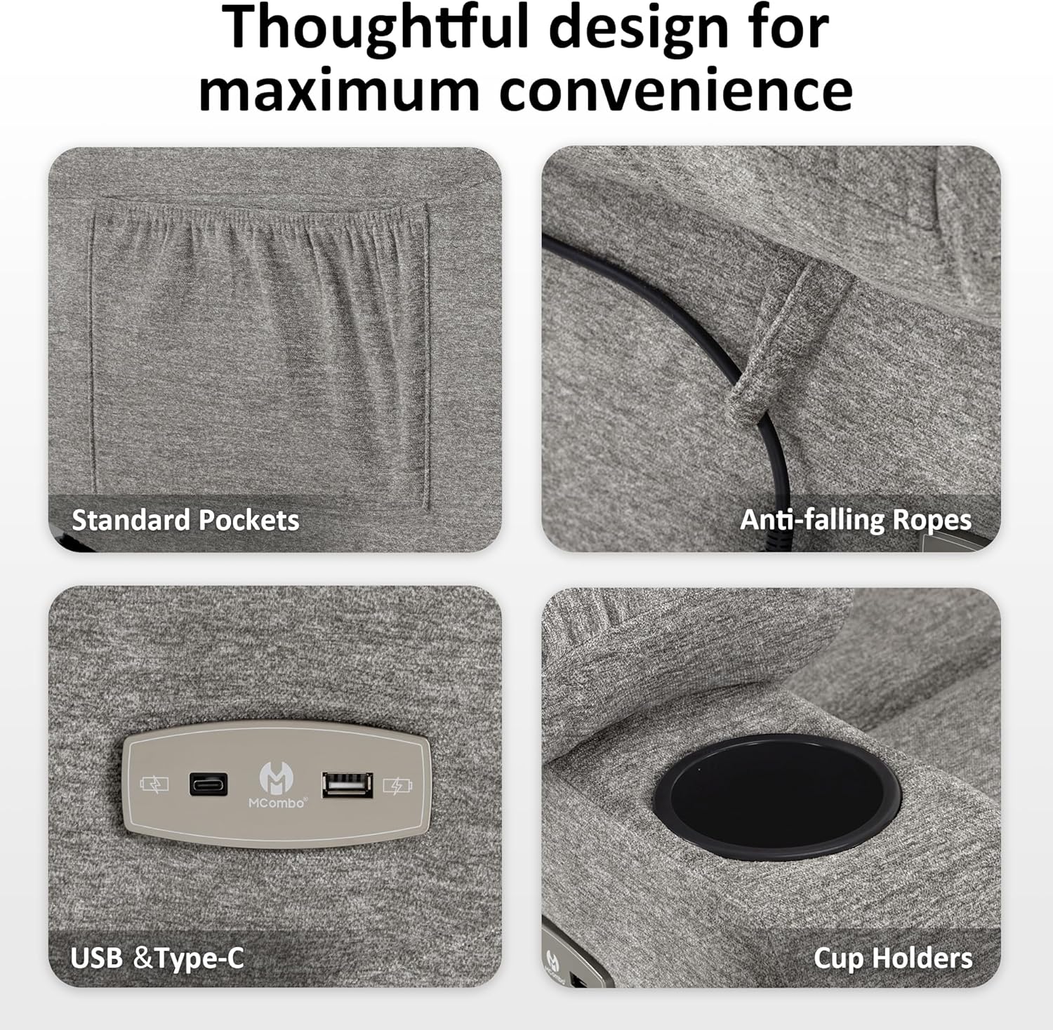 Power Lift Assistance: Counter-balanced lift mechanism to assist the senior stand up easily, smoothly adjust to lift or reclining position you prefer by pressing buttons (Max reclining angle: 140)