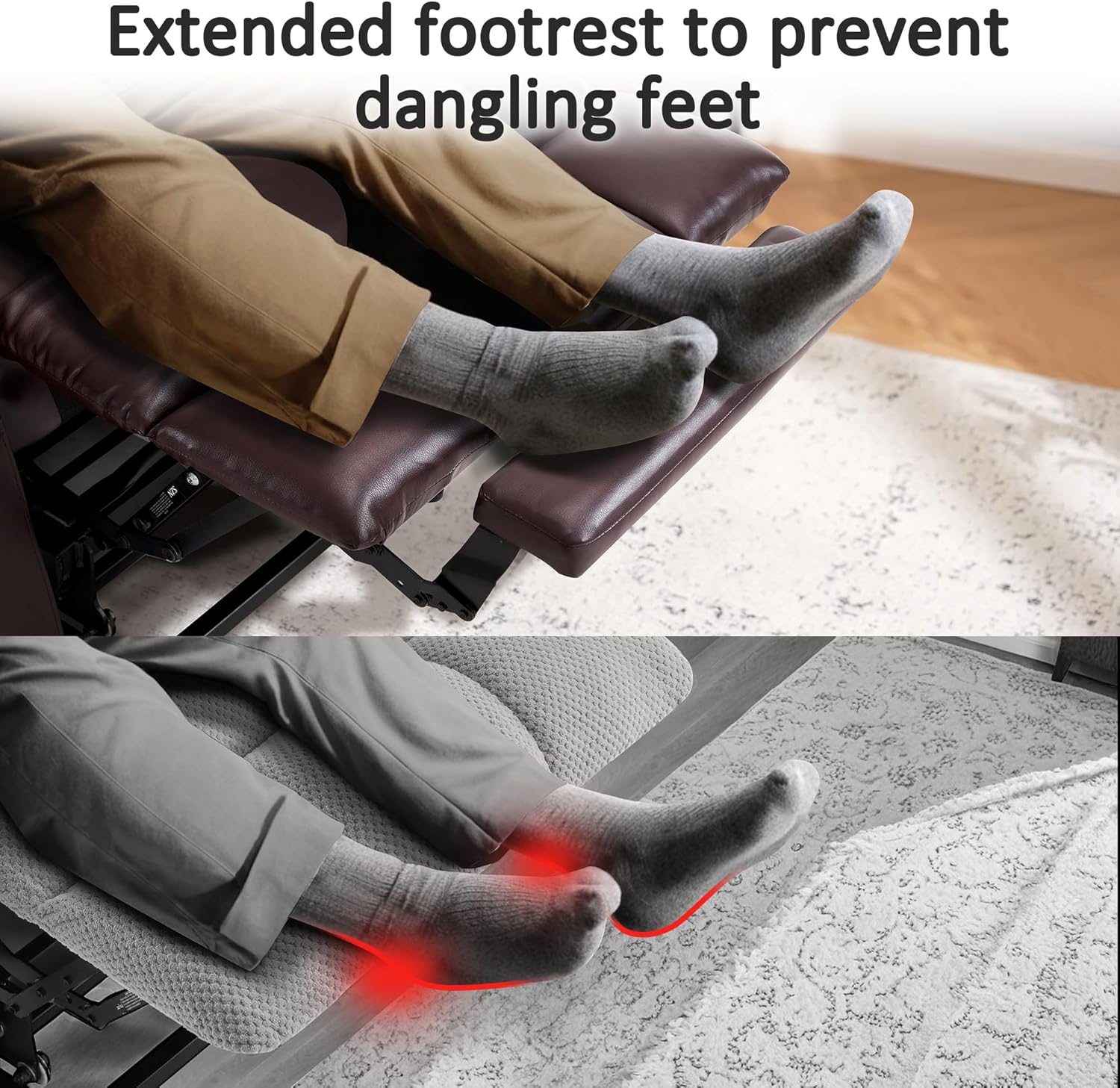 Extended Footrest: The 4.7" extended footrest will allow you to stretch your body more fully and support your feet well without cutting off circulation (Recommended Height: 5'1"-5'9")