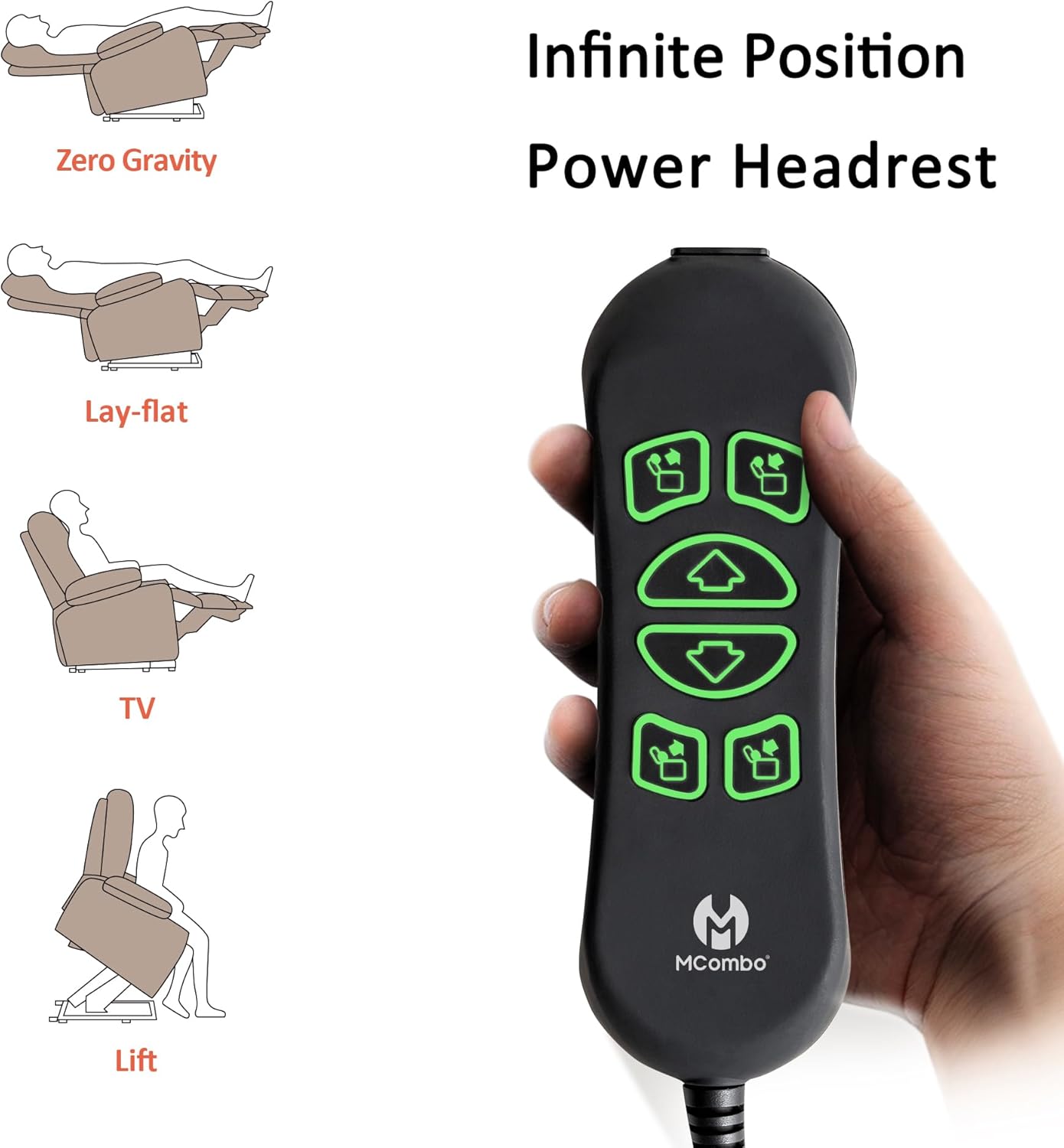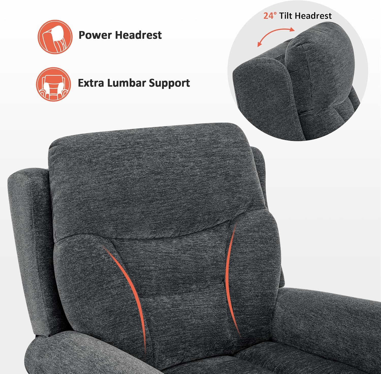 Power Headrest: While adjustable headrests can be used for custom comfort while sitting upright, they are especially designed to allow someone who is reclined back to look forward such as toward the TV without straining the head or neck