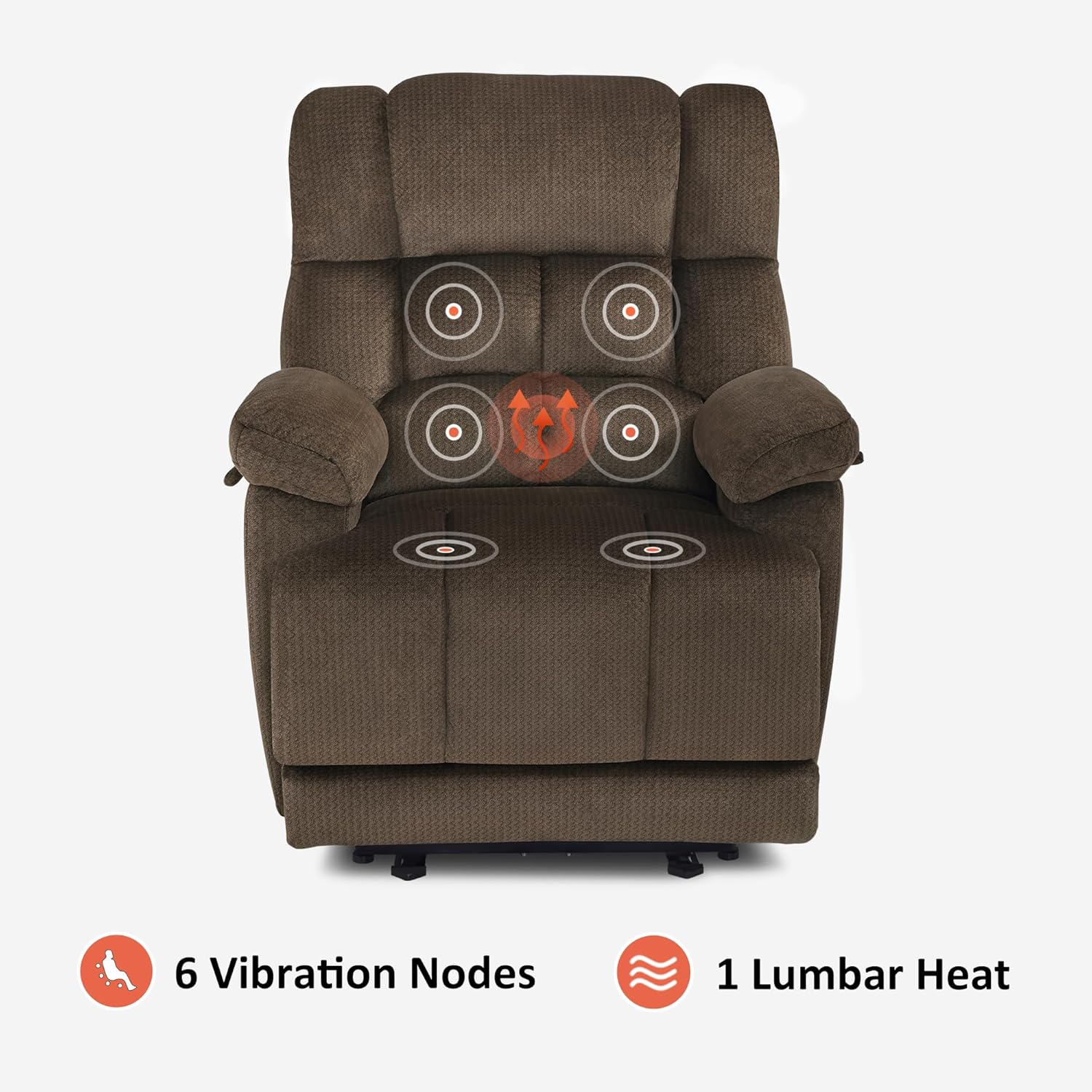 Lumbar Heat & 6 Vibrating Massage Nodes: Enjoy relaxation with 6 vibration points and targeted lumbar heating. Personalize your massage with adjustable modes, intensities, and timer settings