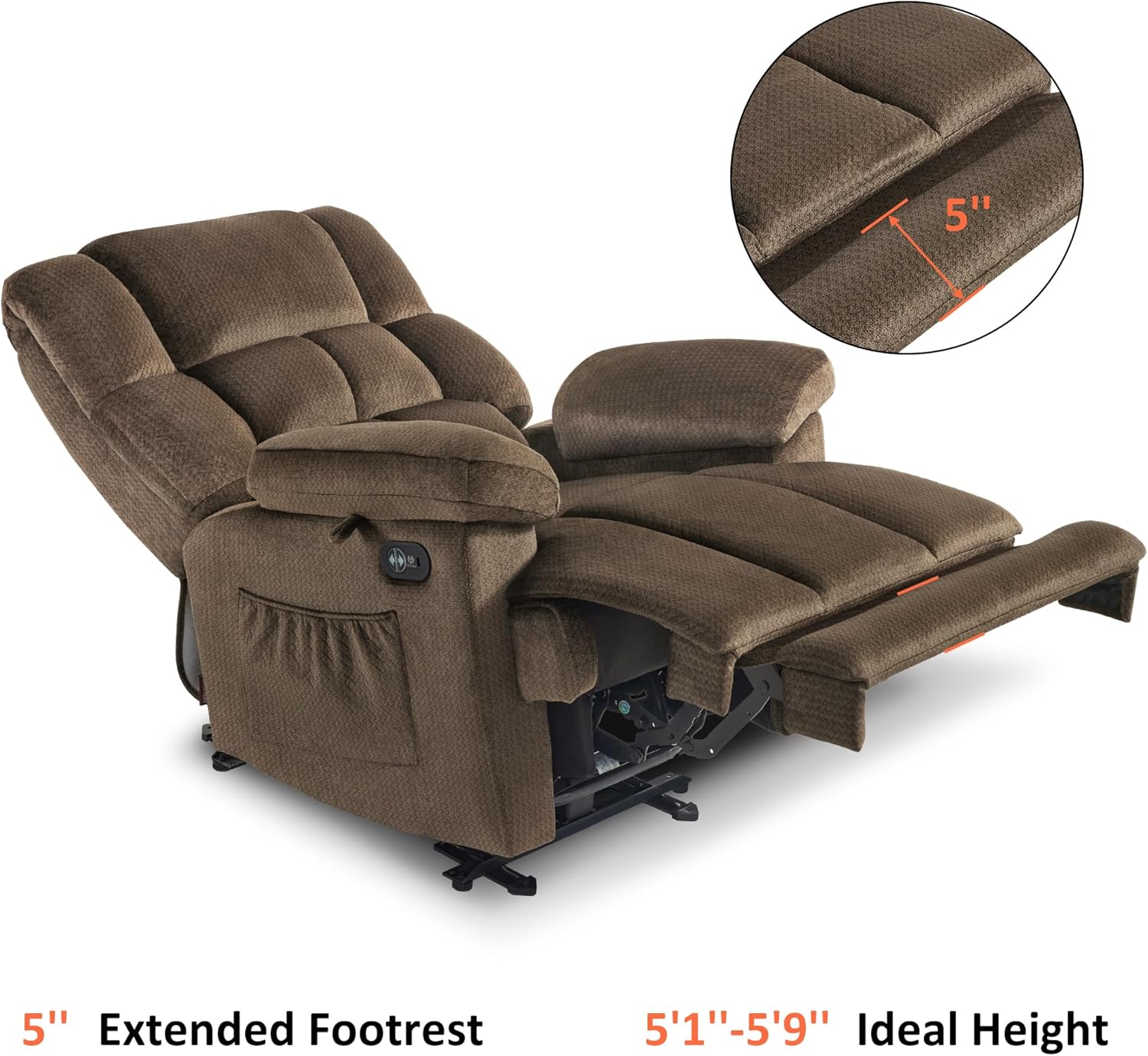 Full Calf Support: The extended footrest cradles your calves like a cloud no more dangling or numb calves when reading, sleeping, or watching TV Recommended height: 5'1"5'9"