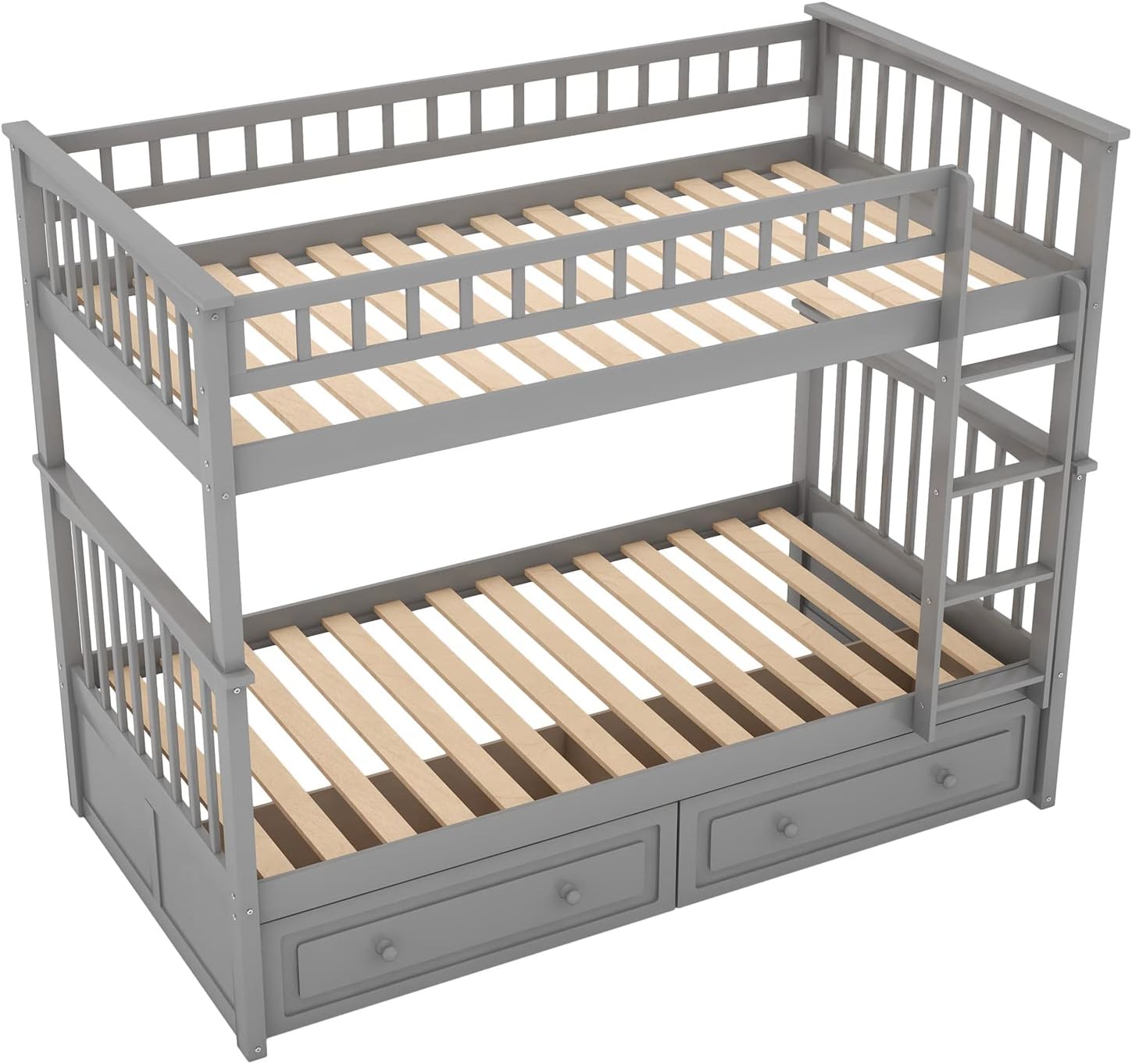 Convertible Design for Flexible UseExperience the adaptability of this bunk bed as it effortlessly transforms to meet your changing requirements. Enjoy the option to use it as a bunk bed, offering two cozy sleeping spaces, or convert it into two separated beds. One bed features two drawers, while the other provides spacious under-bed storage, providing a solution that grows with your needs.