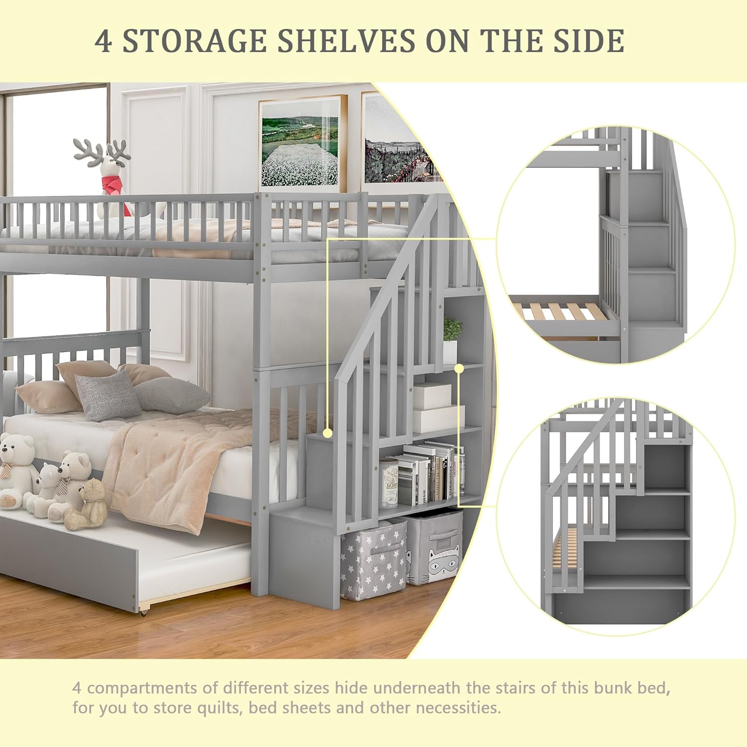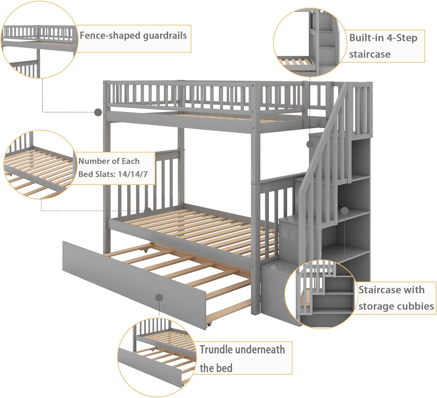 Solid StaircaseWith a four-step set of stairs, this bunk bed provides easy and safe access for getting in and out of the top bunk. Also, given the width of the stairs they also double as very functional storage and help you change the quilts and bed sheets effortlessly when compared with traditional laddered bunks.