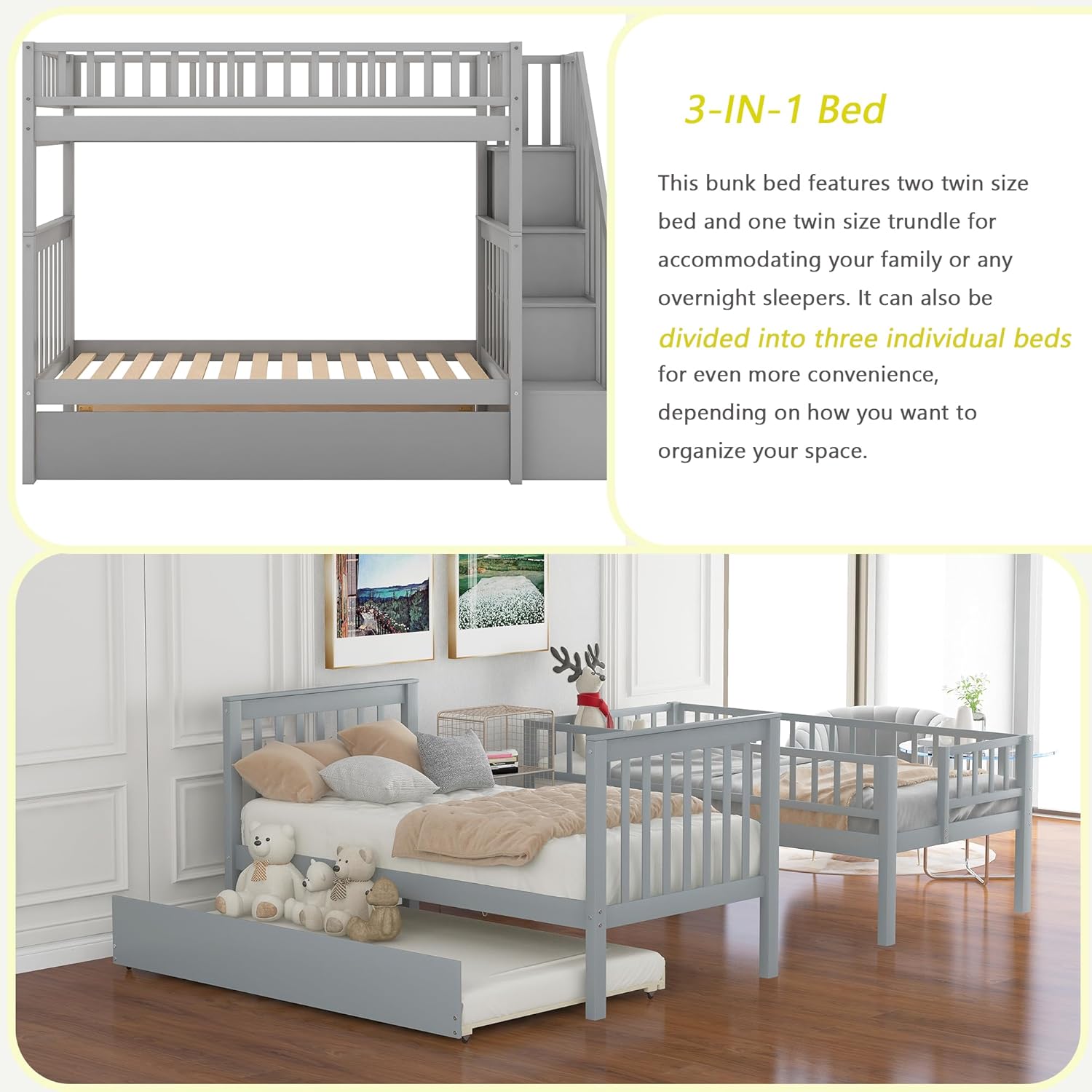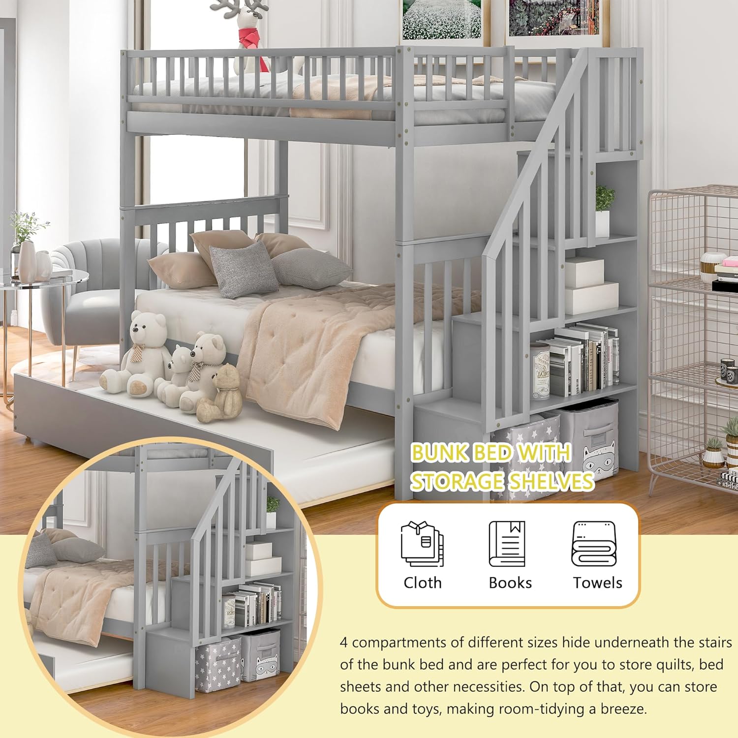 Bunk Bed with Storage4 compartments of different sizes hide underneath the stairs of this bunk bed and are perfect for you to store quilts, bed sheets and other necessities. On top of that, you can store books and toys, making room-tidying a breeze. Functional and aesthetic, this bunk bed will enhance any bedroom.