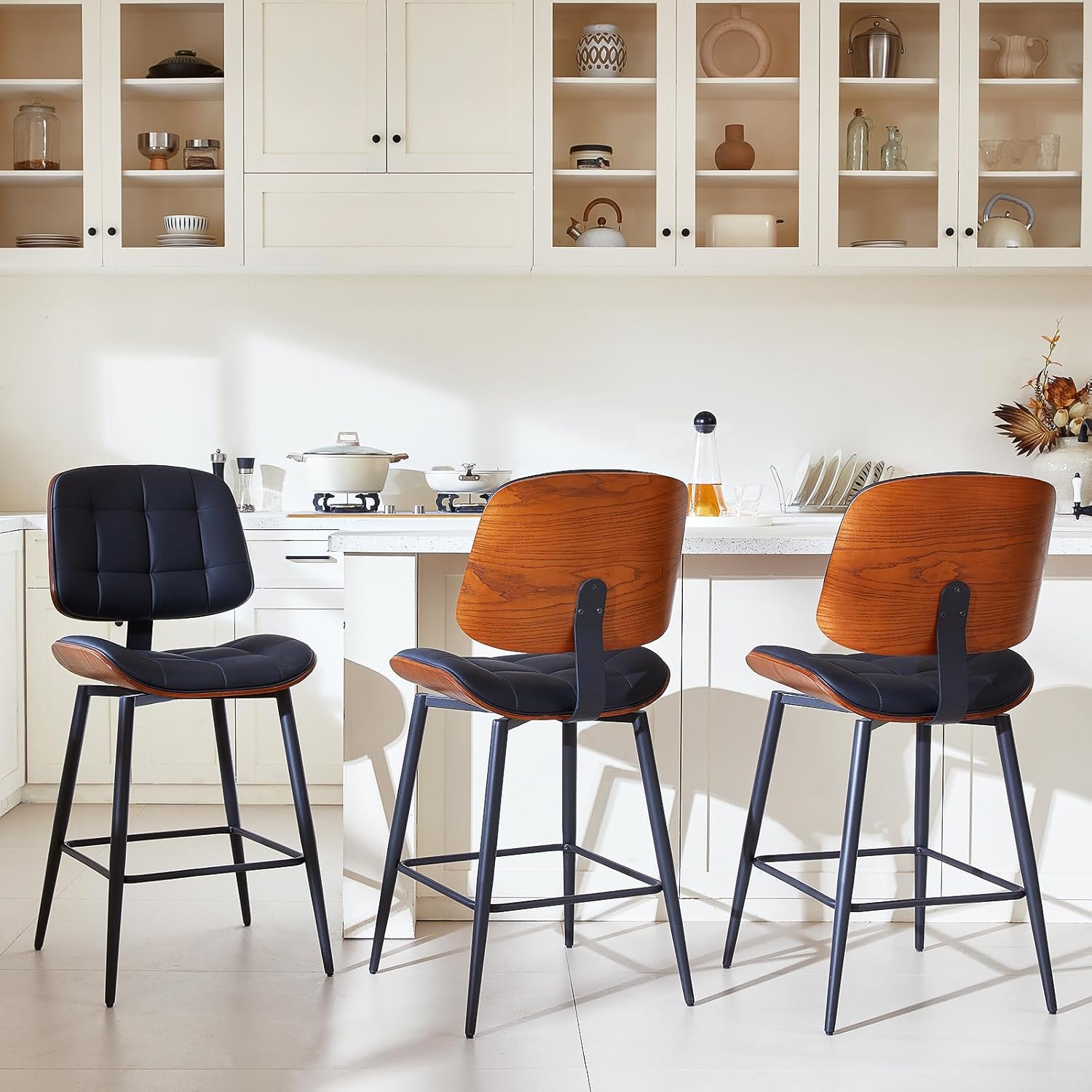 Mid Century Modern Design Inspired by the mid-century modern style, these bar stools beautifully blend vintage accents with contemporary design. Whether placed at a bar, dining room, cafe, kitchen island or living room, they effortlessly lift the visual charm of any interior space.