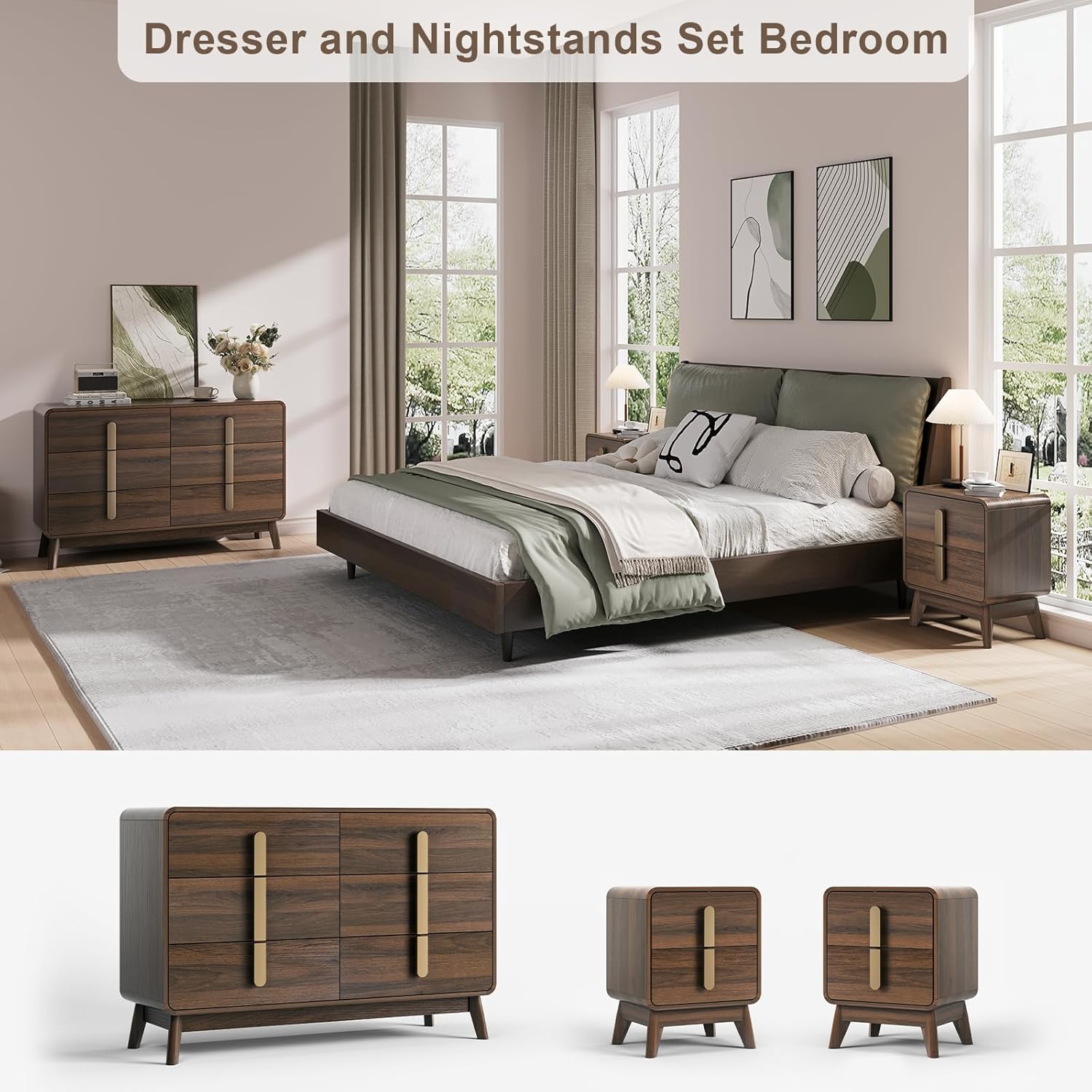 Generous Storage Options: This dresser set for bedroom includes a spacious 6-drawer dresser and two matching nightstands, offering plenty of room to organize clothing, accessories, and everyday essentials. Keep your space neat and clutter-free with ease.