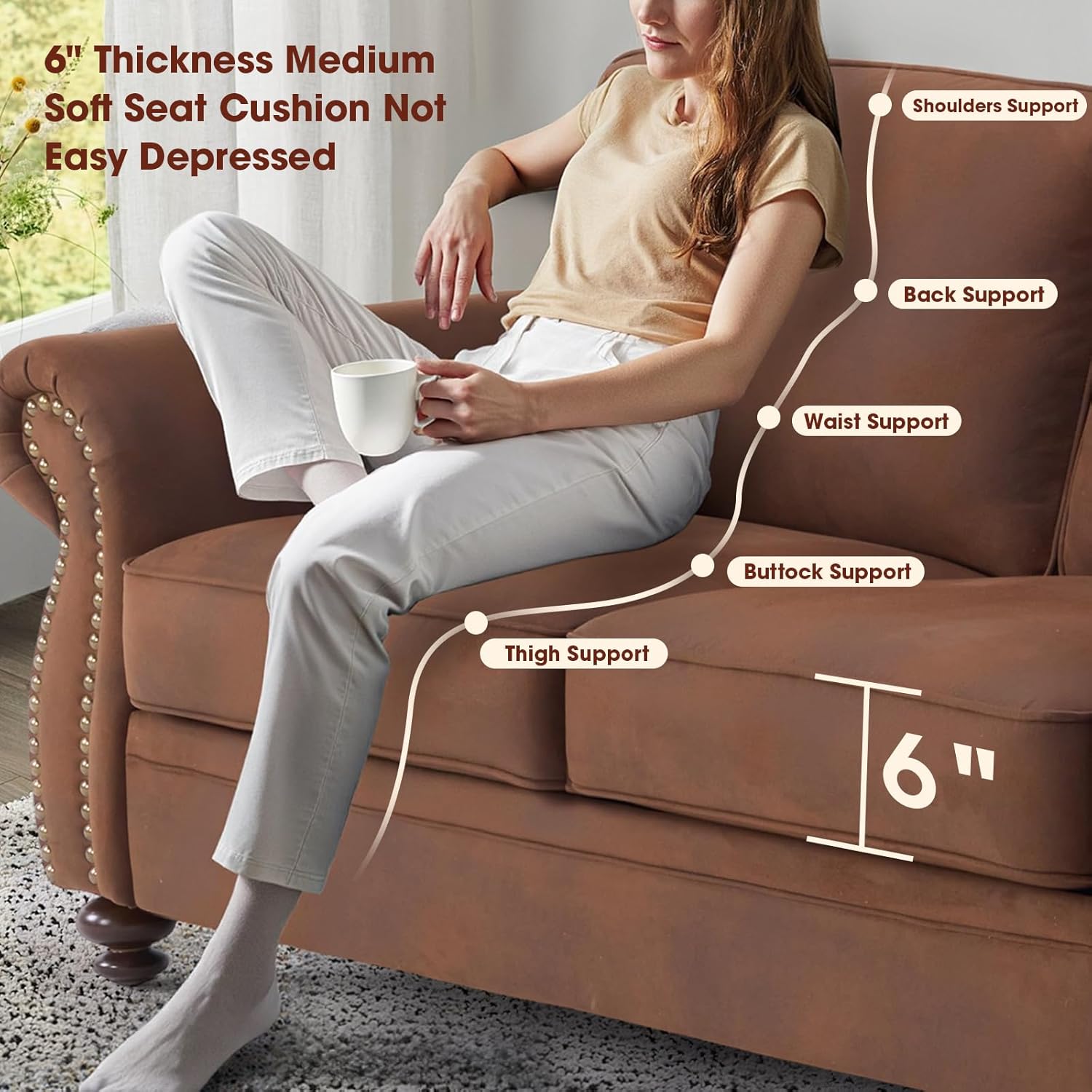 Sturdy & Durable: Crafted with a sturdy solid wood frame, premium serpentine springs, and high-quality foam padding, this loveseat couch is built to last and can effortlessly support up to 800 lbs. Additionally, the solid wood feet are equipped with non-slip foot pads to prevent damage to your floors while ensuring stability and durability.