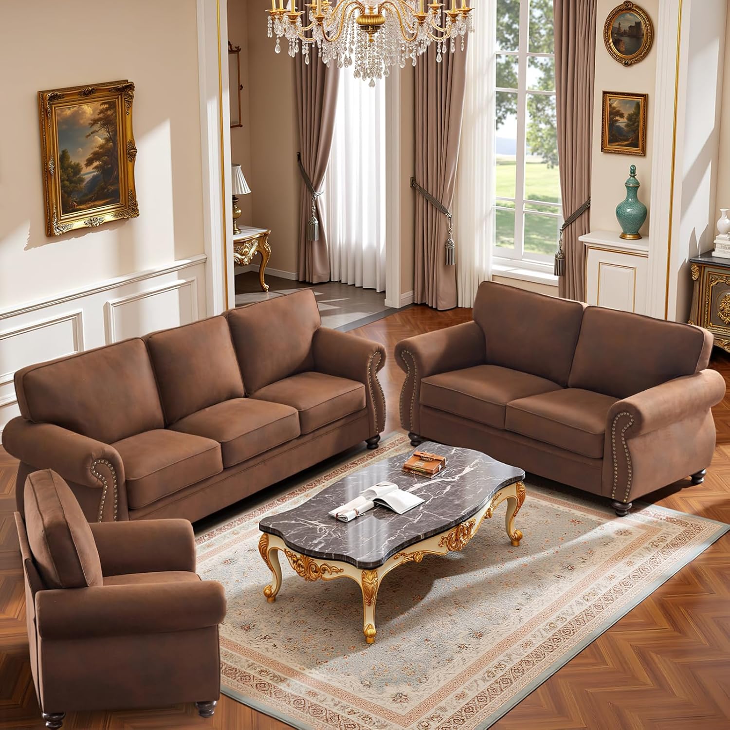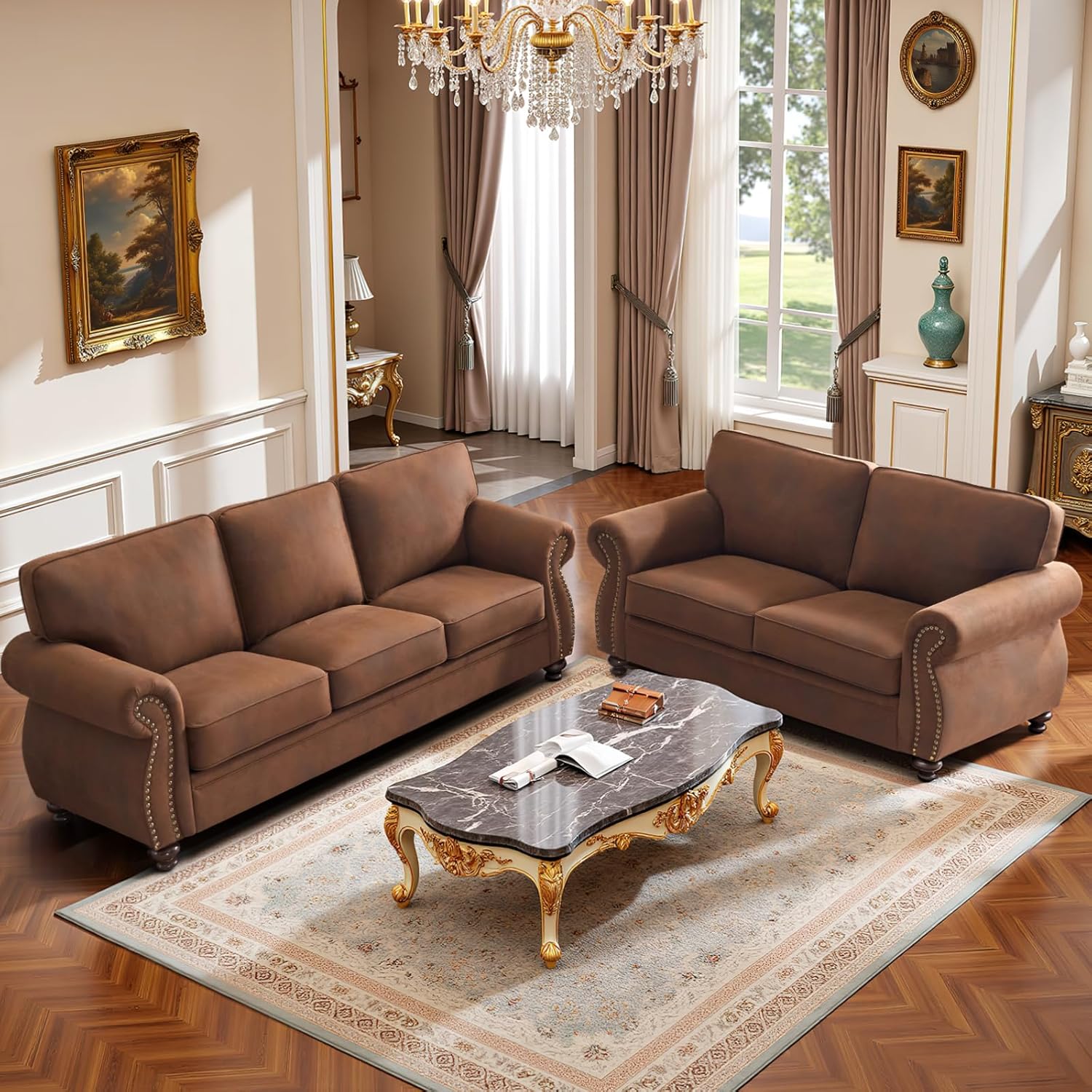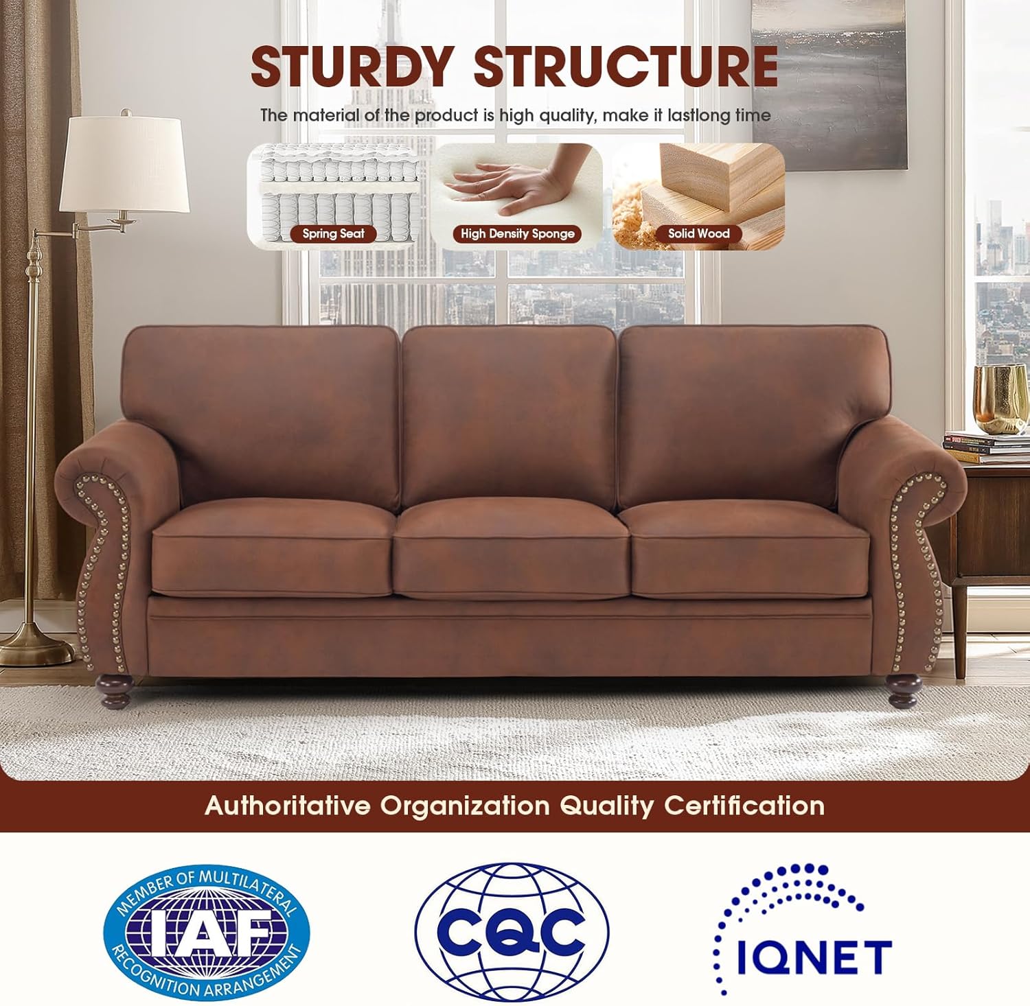 Premium Faux Leather Fabric: This comfy couch is made of Leather-patterned fabric, which offers both comfort and durability. Its smooth and luxurious texture adds sophistication to any space. Unlike a genuine leather sofa, it's easier to maintain and resistant to pet damage, ensuring it remains in pristine condition for years to come.