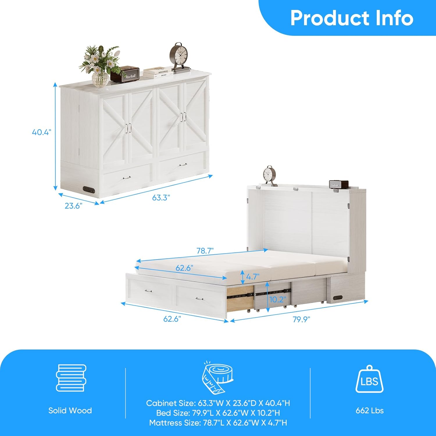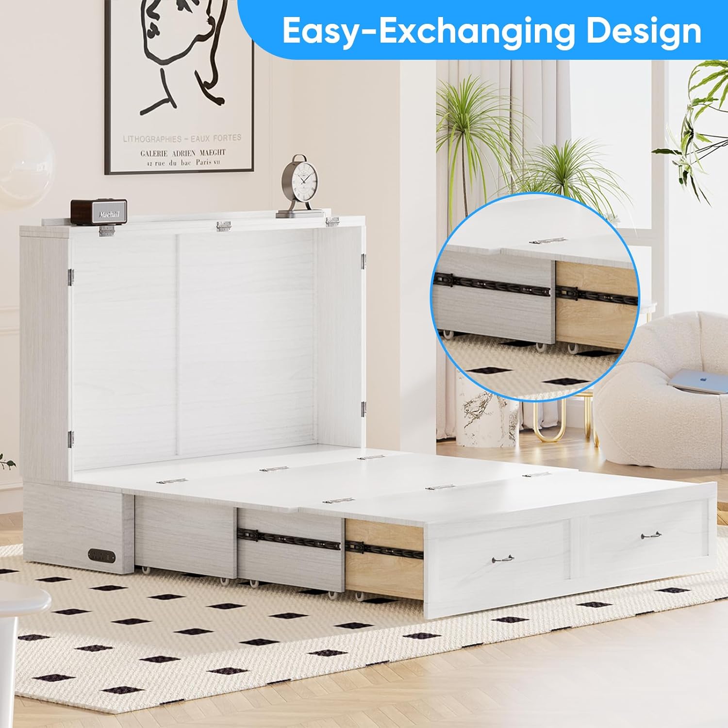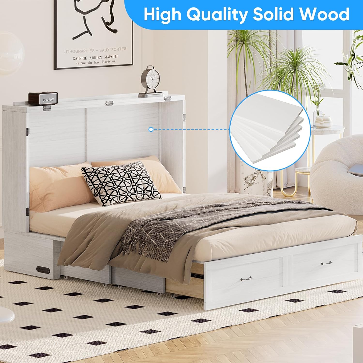 Declutter instantly! 2 jumbo drawers store bedding/clothes/gadgetsworks in bed/cabinet modeno dead space!Full storage during conversionsno capacity loss! Space-saving essential for tiny homes/dorms/studios.