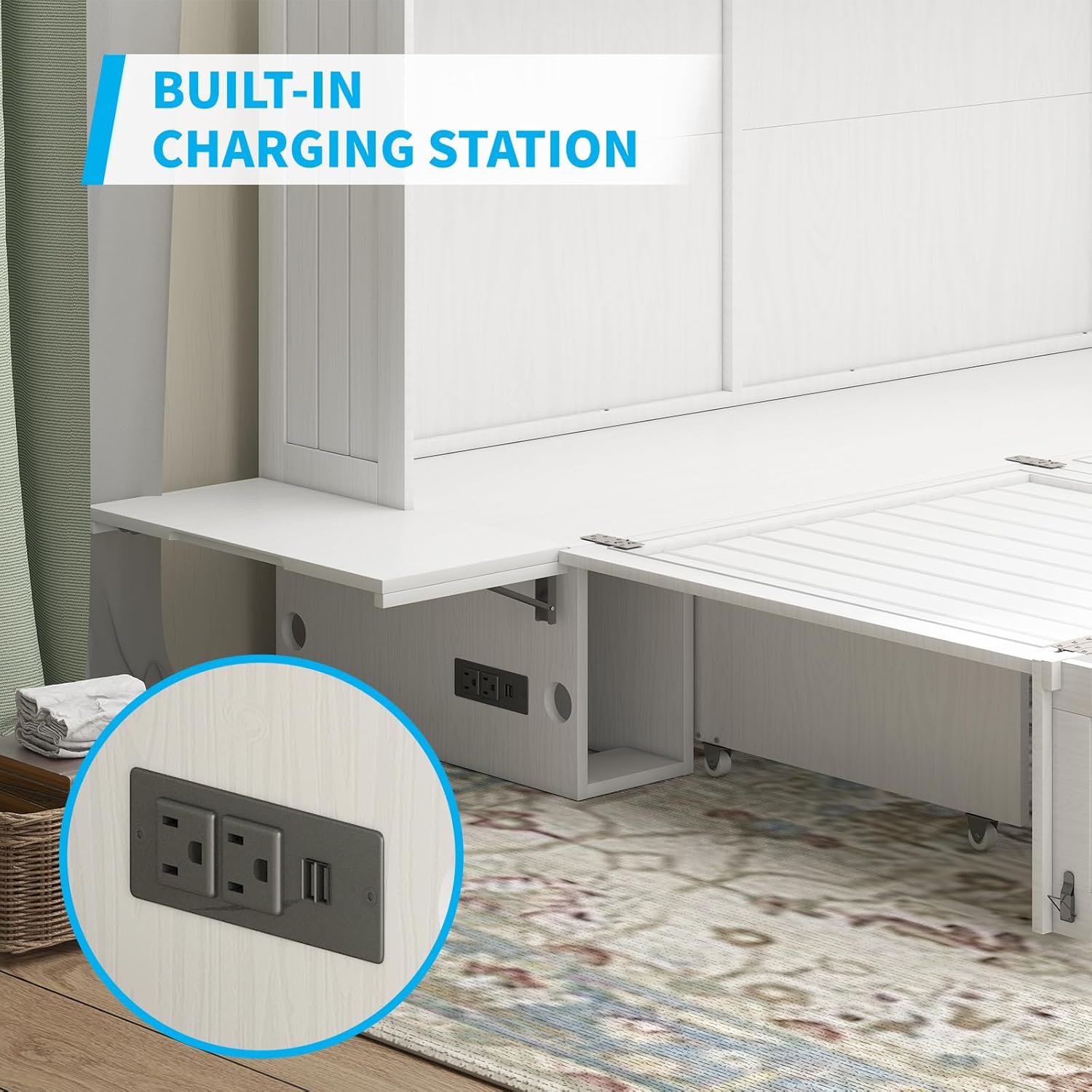 Tri-folding Mattress: The murphy bed cabinet is equipped with a 4.7-inch thick triple mattress, offering ultimate comfort. This mattress is made of highly elastic sponge and features excellent elasticity and a skin-friendly surface. Whether you take a nap during the day or sleep at night, you will have a comfortable sleep experience.