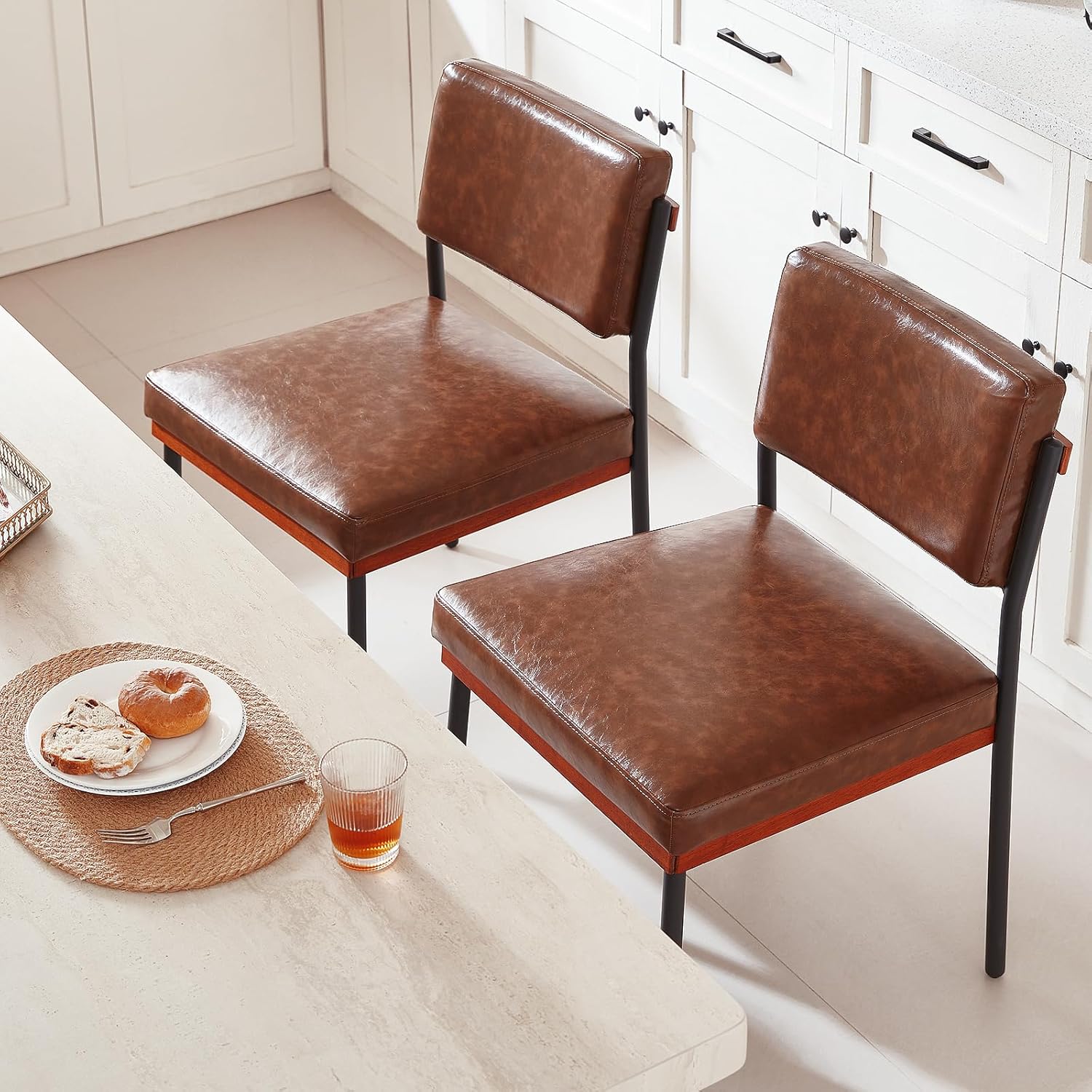 Sleek & Versatile Design This pair of armless chairs boasts a sleek, minimalist design that complements any decor. Perfect for dining rooms, kitchens, or even as accent chairs, they strike an ideal balance between aesthetics and everyday functionality.