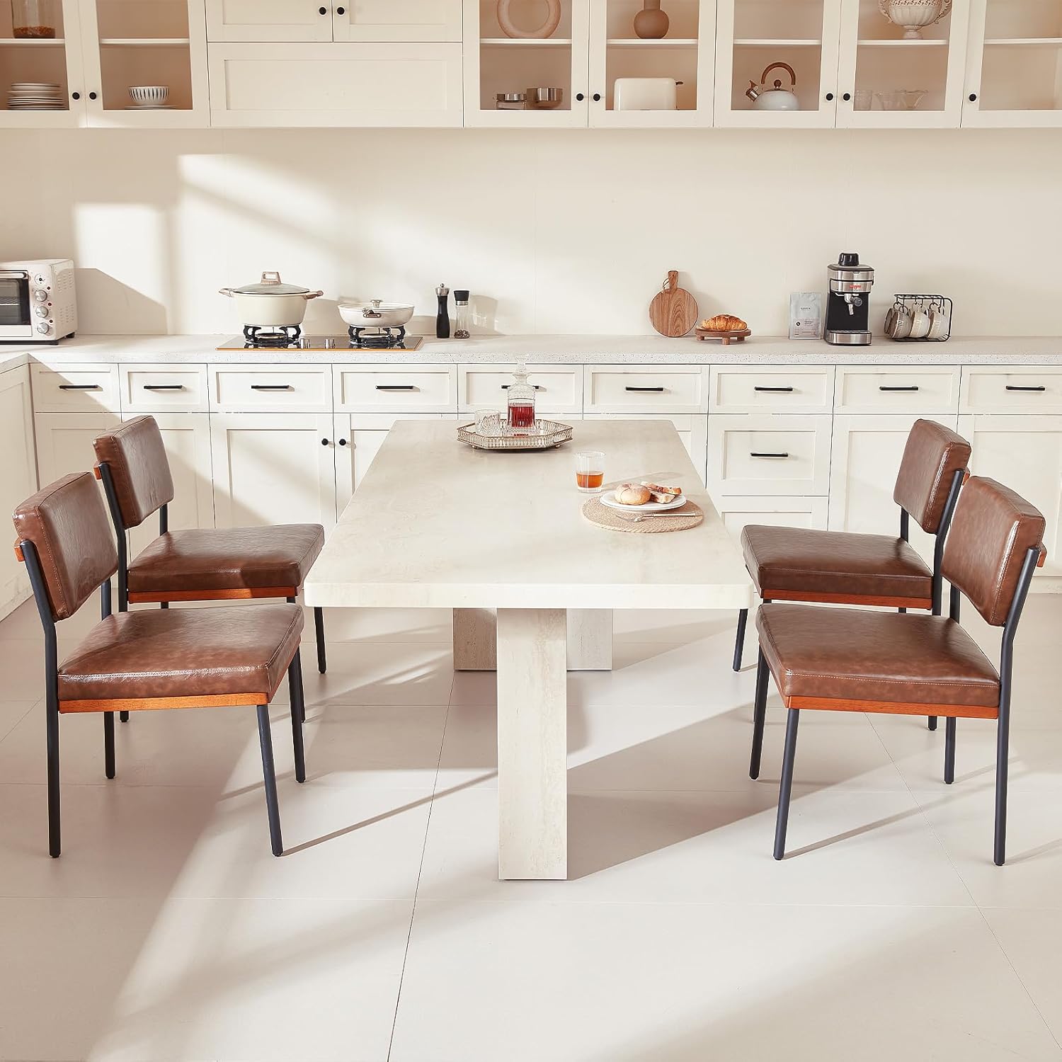Perfect Fit & Easy Care Designed for real homes, each chair measures 36"H x 18.9"W x 19.7"D, featuring a wide 17.5 backrest for ample comfort. The high-quality, skin-friendly faux leather seat only needs a quick wipe with a damp cloth to stay clean, making it ideal for busy households.