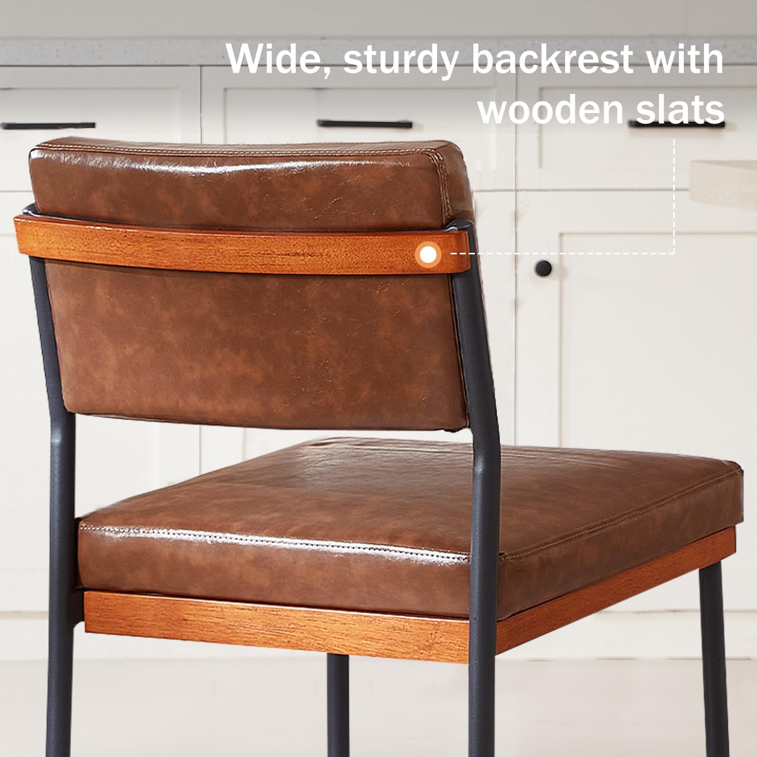 Perfect Fit & Easy Care Designed for real homes, each chair measures 36"H x 18.9"W x 19.7"D, featuring a wide 17.5 backrest for ample comfort. The high-quality, skin-friendly faux leather seat only needs a quick wipe with a damp cloth to stay clean, making it ideal for busy households.