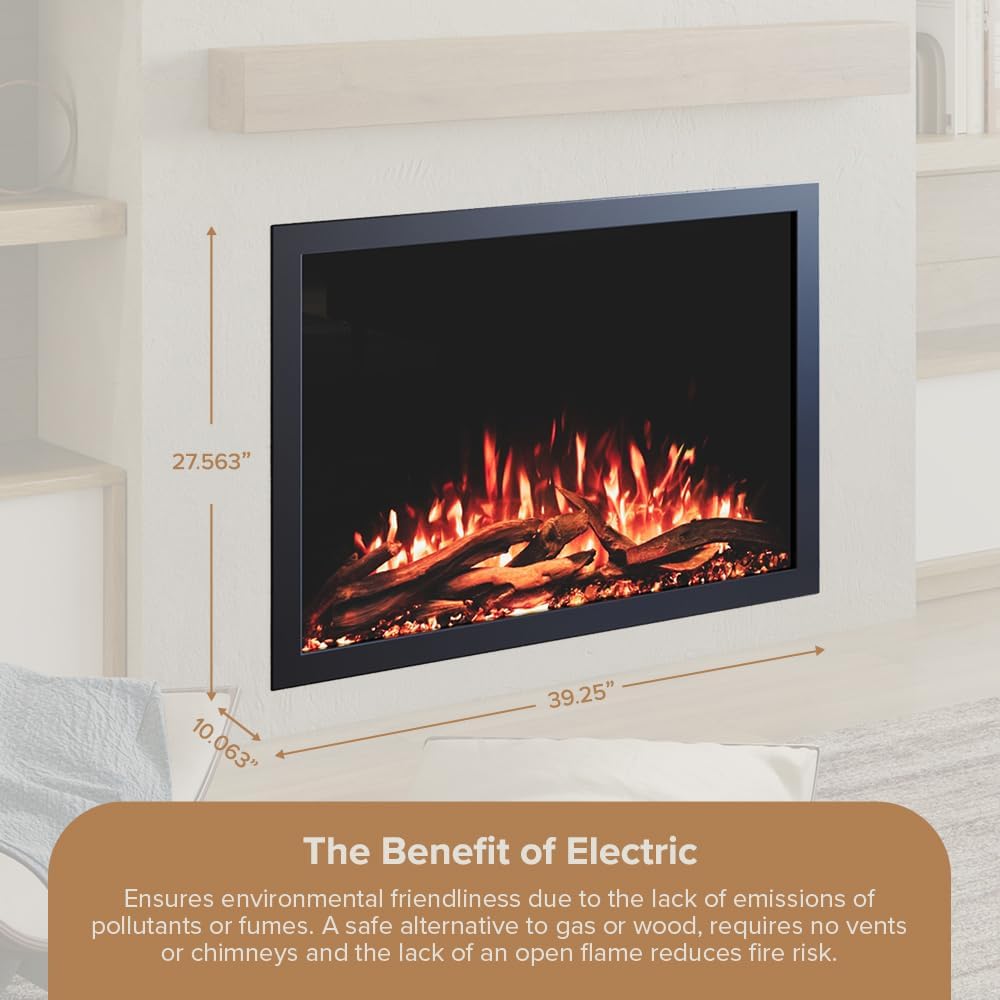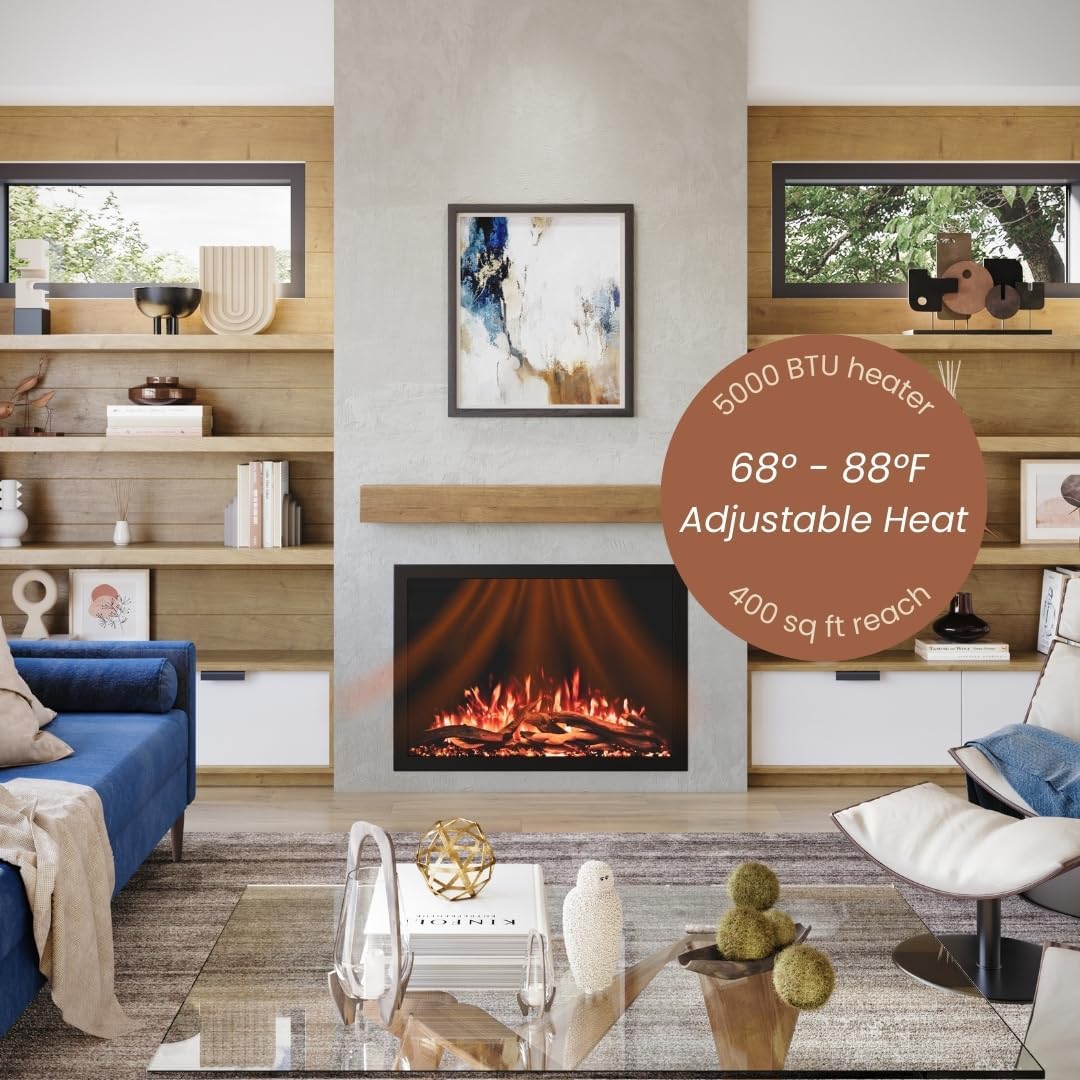 POWERFUL HEATER: Heating up to 400 Sq Ft this Electric Fireplace insert is the perfect addition to fill the space of your existing fireplace and can heat the rest of your room.