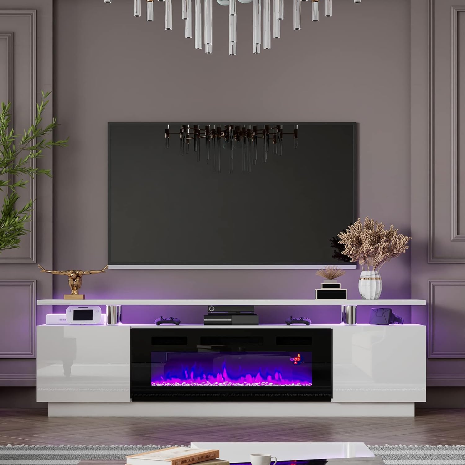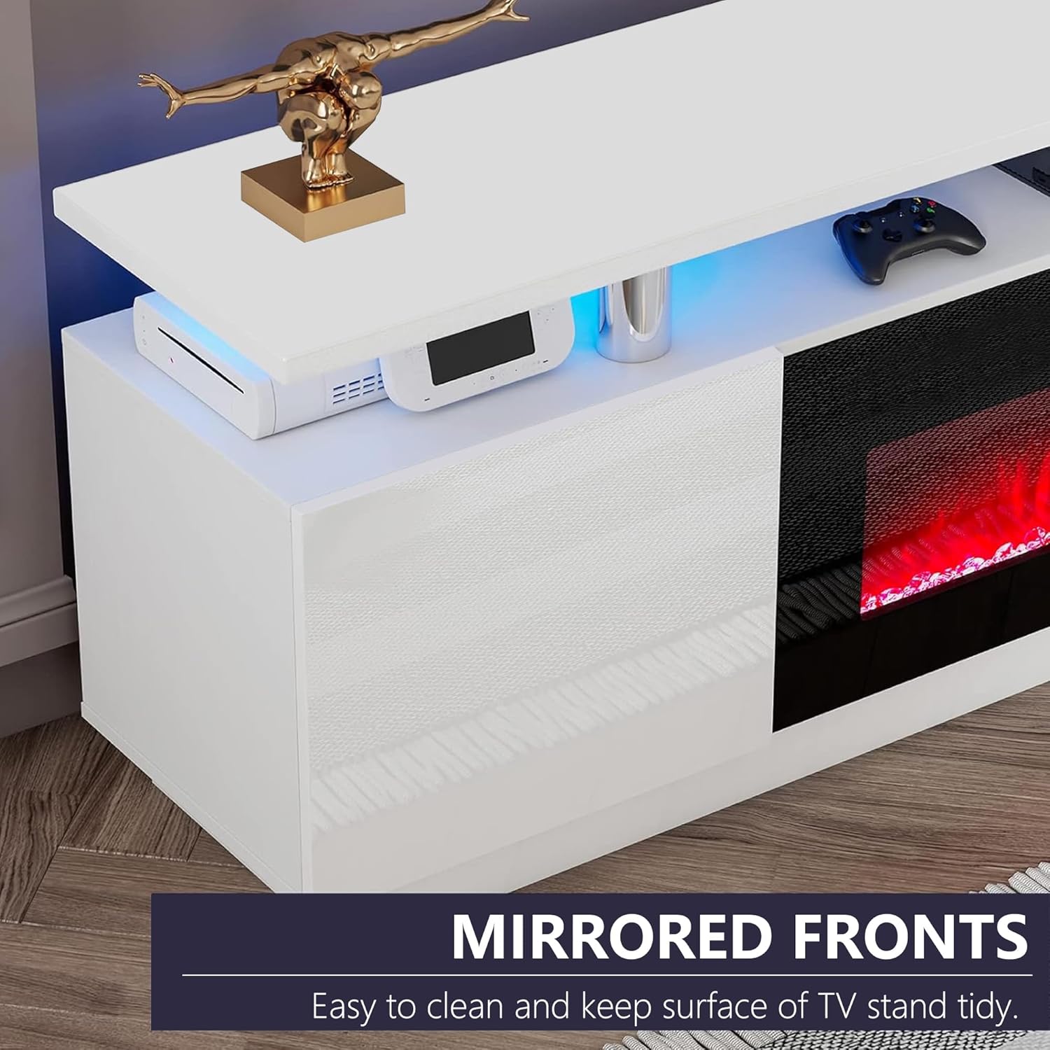 Modern Design: Mirrored fronts with matte body perfectly match various styles of furniture. TV console with 12-color LED light adds a fashion appeal to your living room or gaming room.