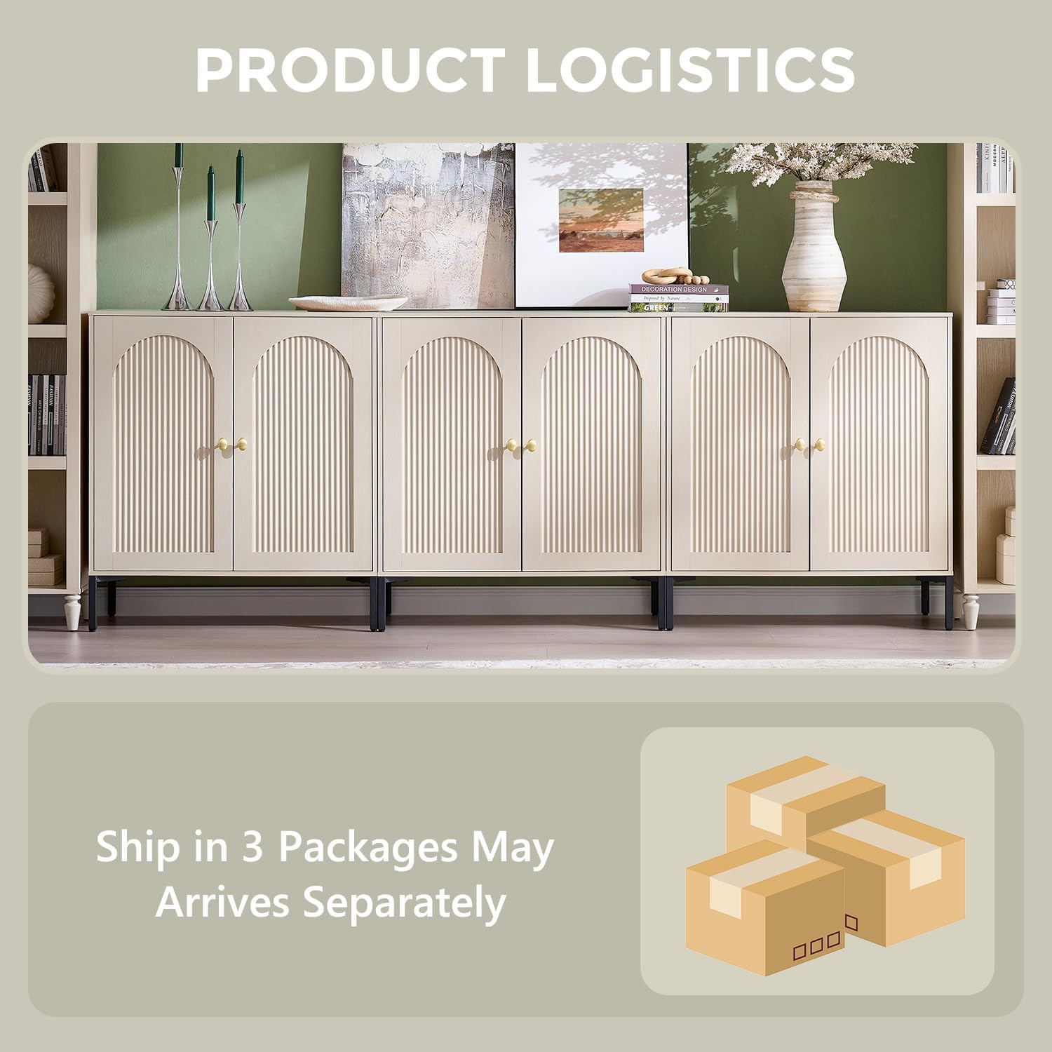 Easy to Assemble & ServicesThree Cabinets are shipped in two packages and may arrive on different days! Thickened foam and wooden protective panels provide comprehensive protection for all components throughout shipping. Each part is clearly labeled, With just 1.5 hours and 1-2 adults, you can easily complete this installation task. Should you have any questions about assembly or the product, our customer service team will respond within 24 hours to provide a satisfactory solution!