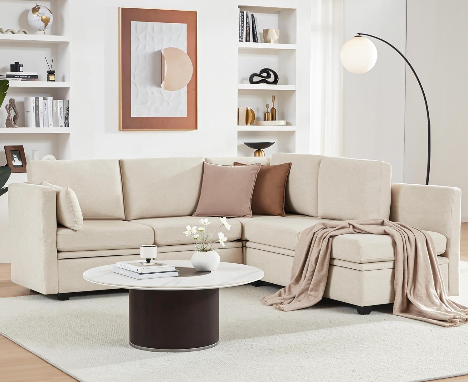 Modular Sectional Sleeper Sofa, Sectional Couch Reversible Sleeper Sofa Bed, 6 Seat Modular Couch with Storage and Chaise, Couches for for Living Room, Beige