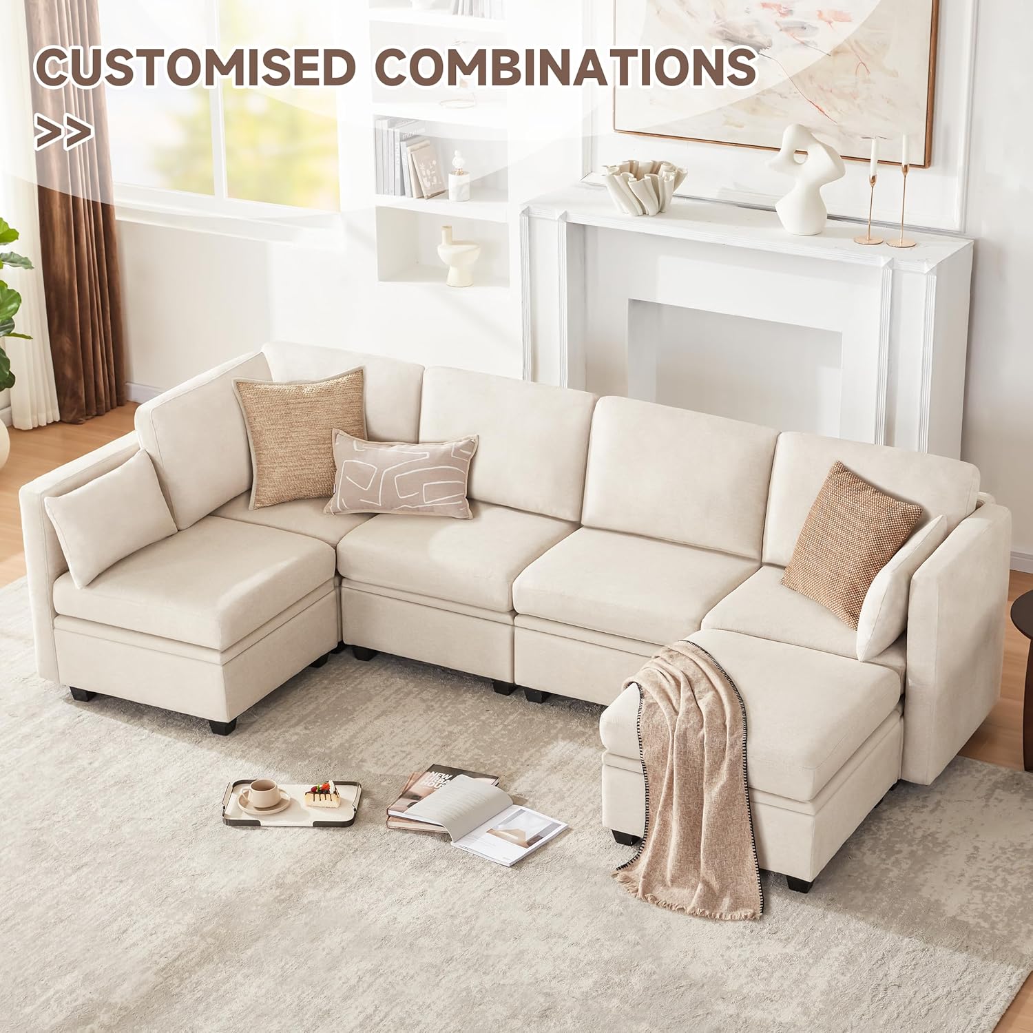 EASY ASSEMBLY & MODULAR DESIGN: The modular sectional sofa boasts an effortless setup. There's no need to worry about complex procedures or tools - we've taken care of everything for you. Its modular design offers versatility, enabling you to rearrange the components according to your preferences. Whether you prefer a traditional layout or seek a sleeper sofa bed for accommodating your guests'sleep needs or movie nights, this sectional sofa meets your ever-changing requirements. -