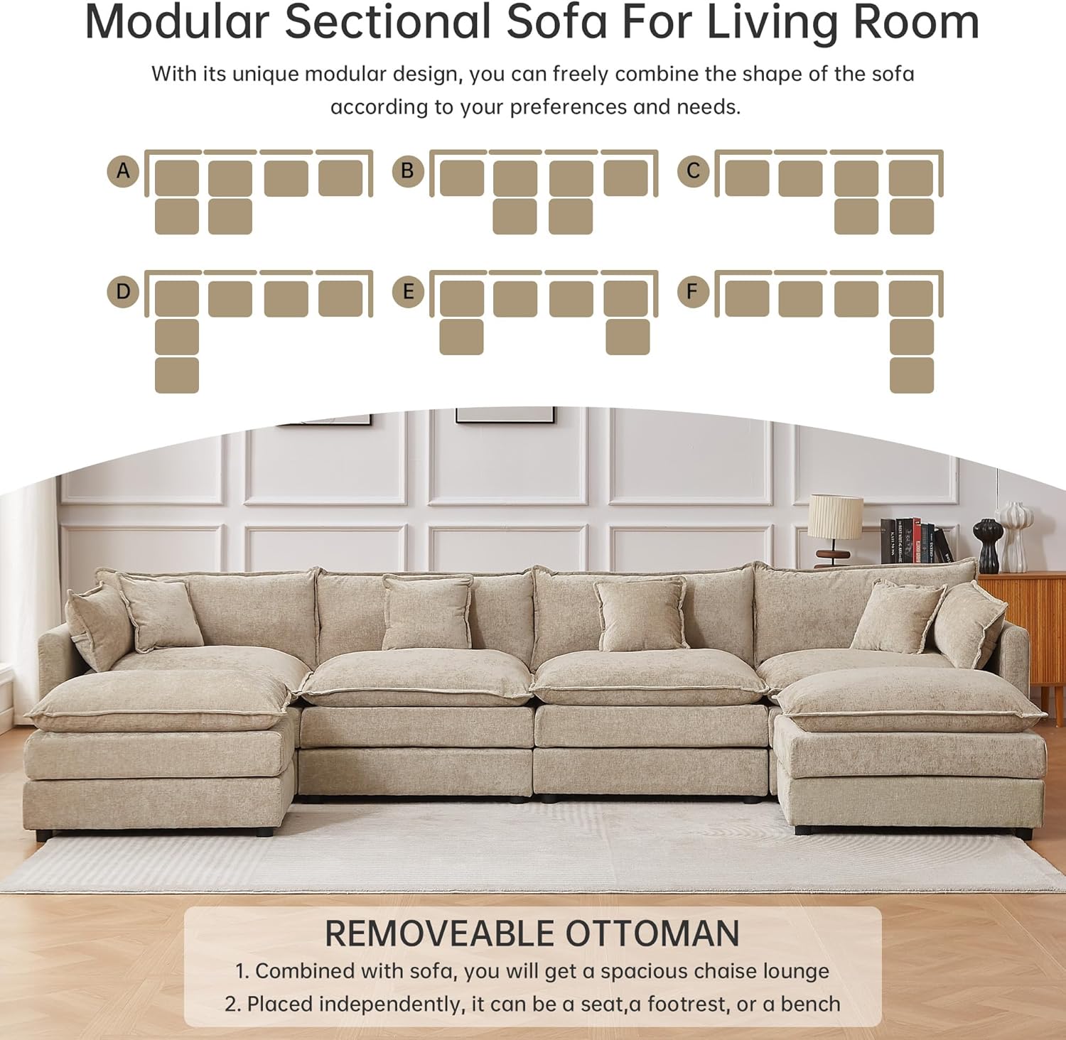 Spacious Seating Space: With its extra-deep 25.6'' seat design, the soft cloud sofa offers a generous seating space, whether youre entertaining guests or enjoying quality time with family, everyone can find a cozy spot on the cloud couch, the cushions and backrests can be removed or moved.