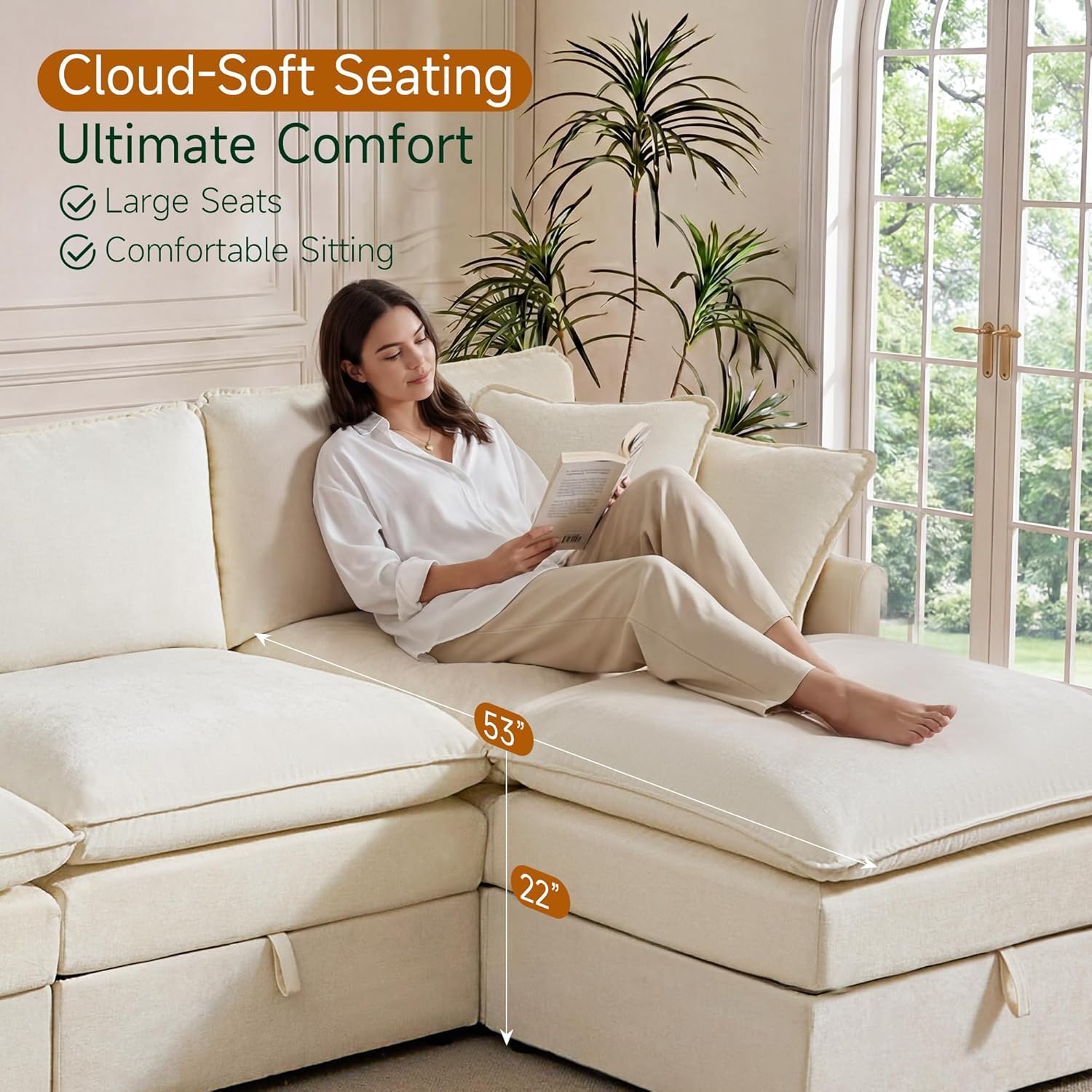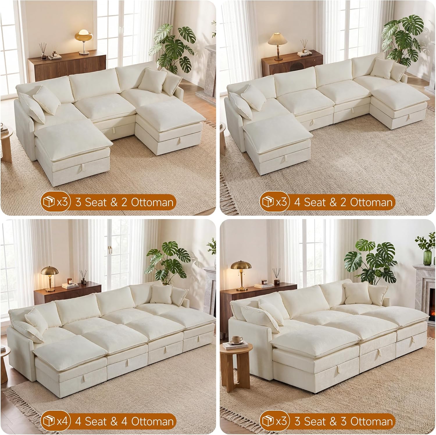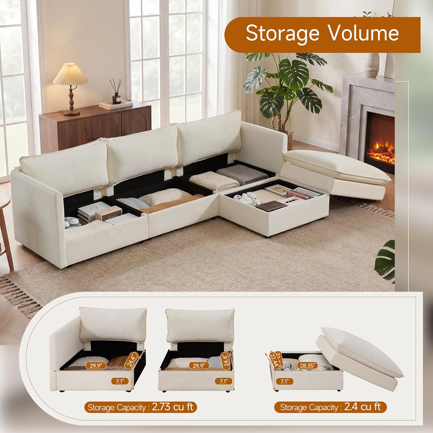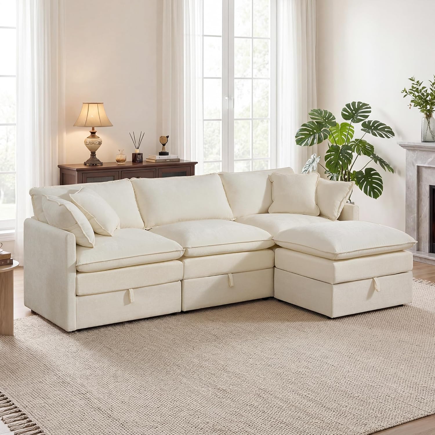 Design Your Perfect Layout: Embrace flexibility with this modular sectional sofa. Arrange the pieces to suit your space and needs, and enjoy the added bonus of a practical Fabric Sectional with Storage, expertly crafted in soft, durable chenille